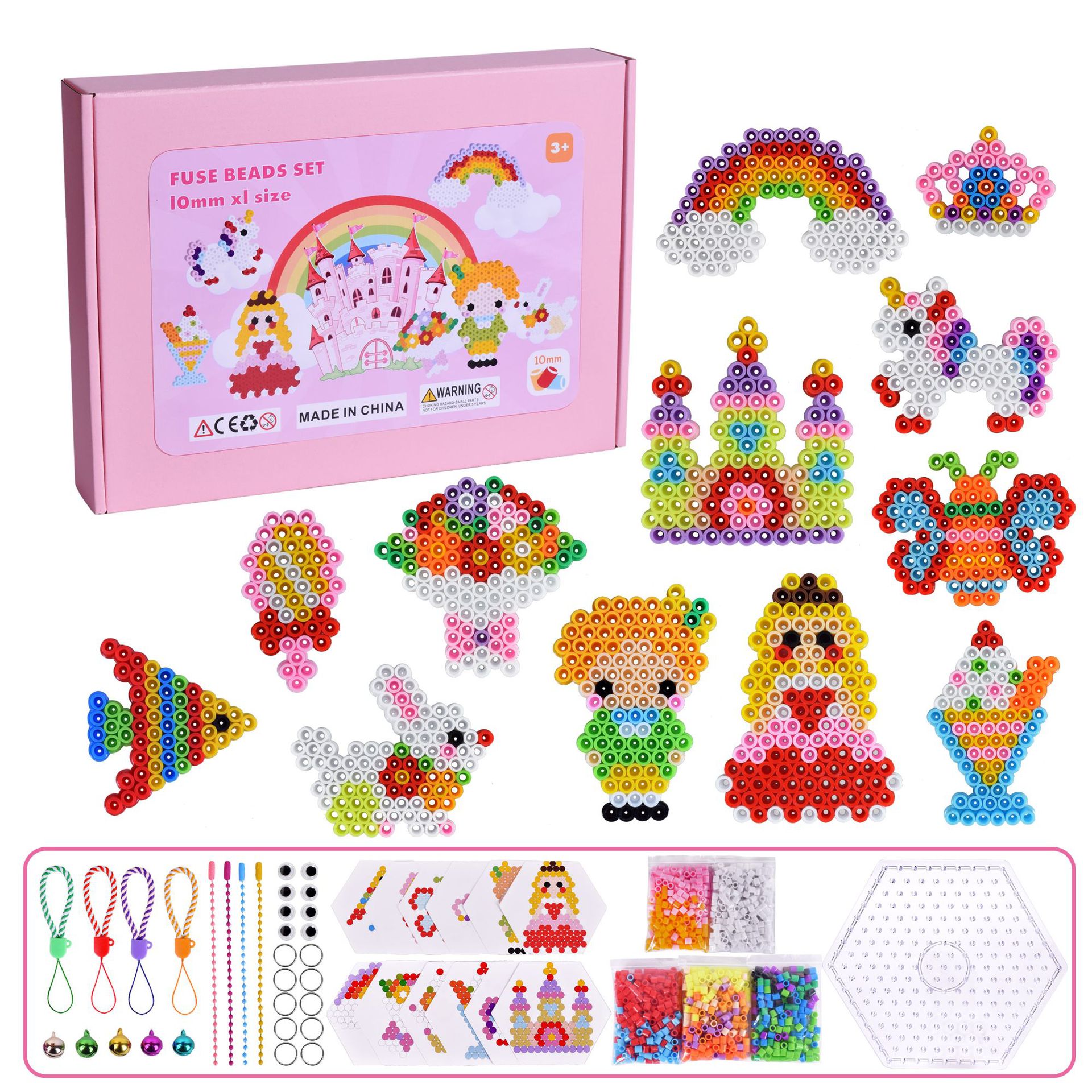 跨境热熔豆彩盒拼豆材料包10mm手工DIY拼豆套装儿童diy挂件拼豆豆