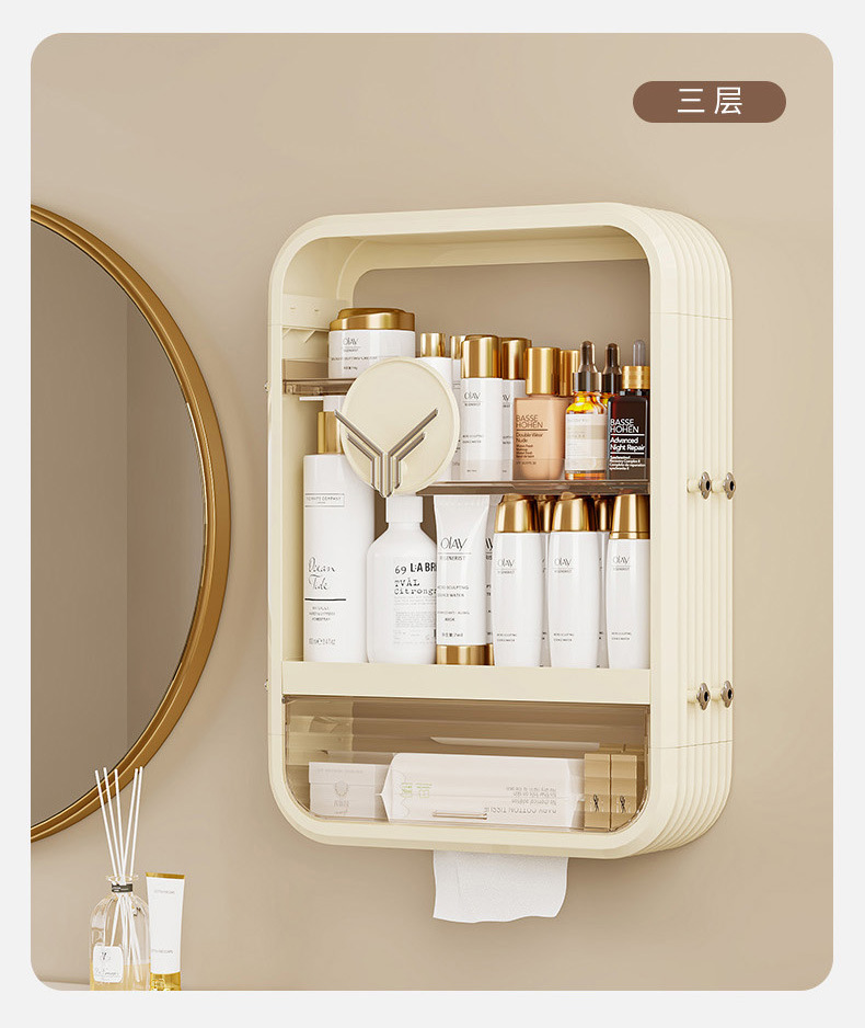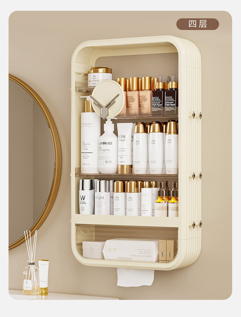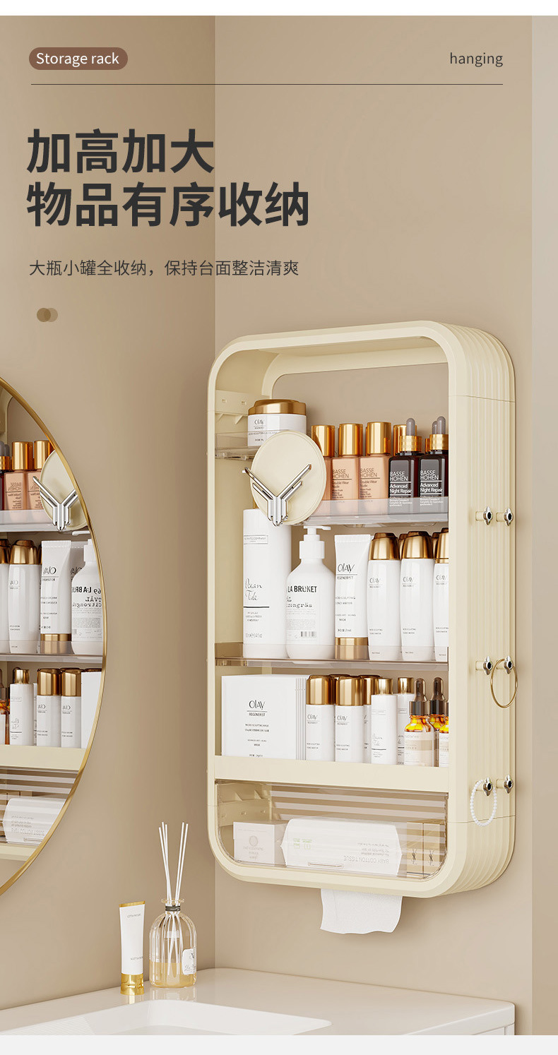 浴室の壁のキャビネットの収納ラック洗面化粧品収納ロッカー防水壁掛けパンチフリー
