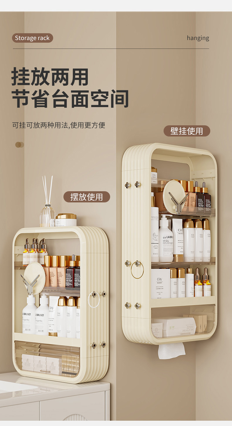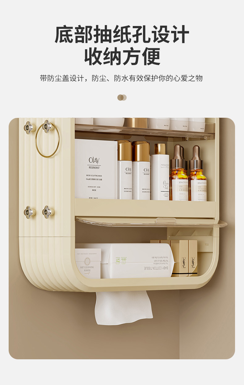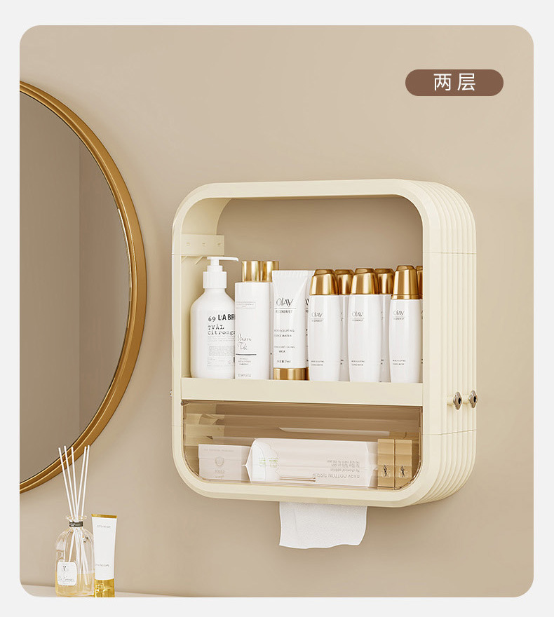 家庭用折り畳み壁掛け収納棚トイレの壁に穴を開けない化粧品収納ケース浴室防塵棚