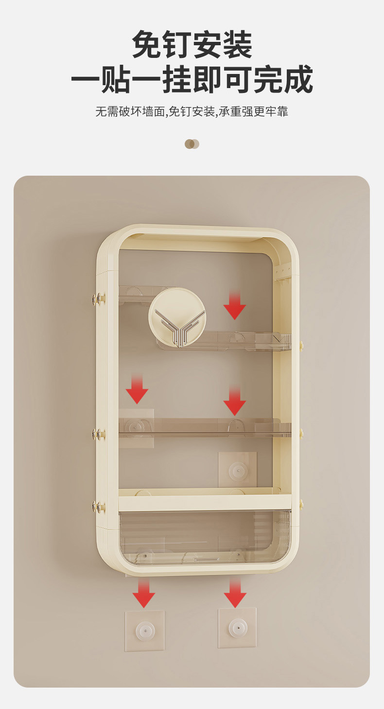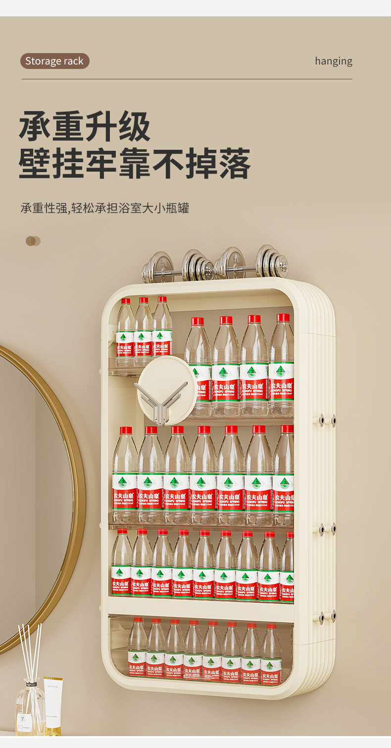 免打孔壁挂式浴室置物架带门多层化妆品卫生间收纳架多功能储物架