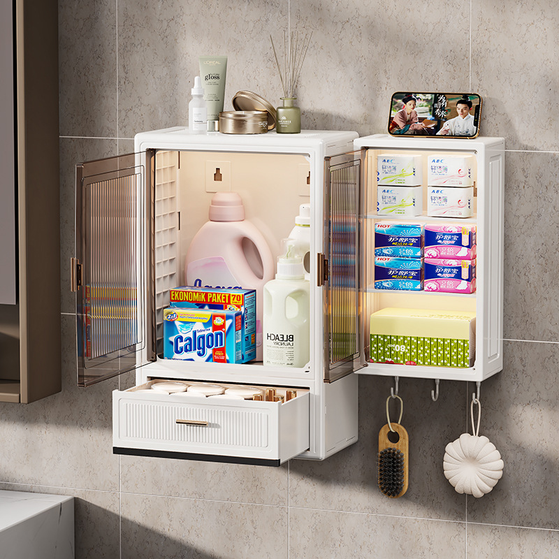 浴室収納キャビネット穴なし壁掛け磁気吸引キャビネット付き防塵収納棚家庭用トイレ壁掛け棚