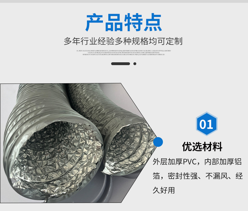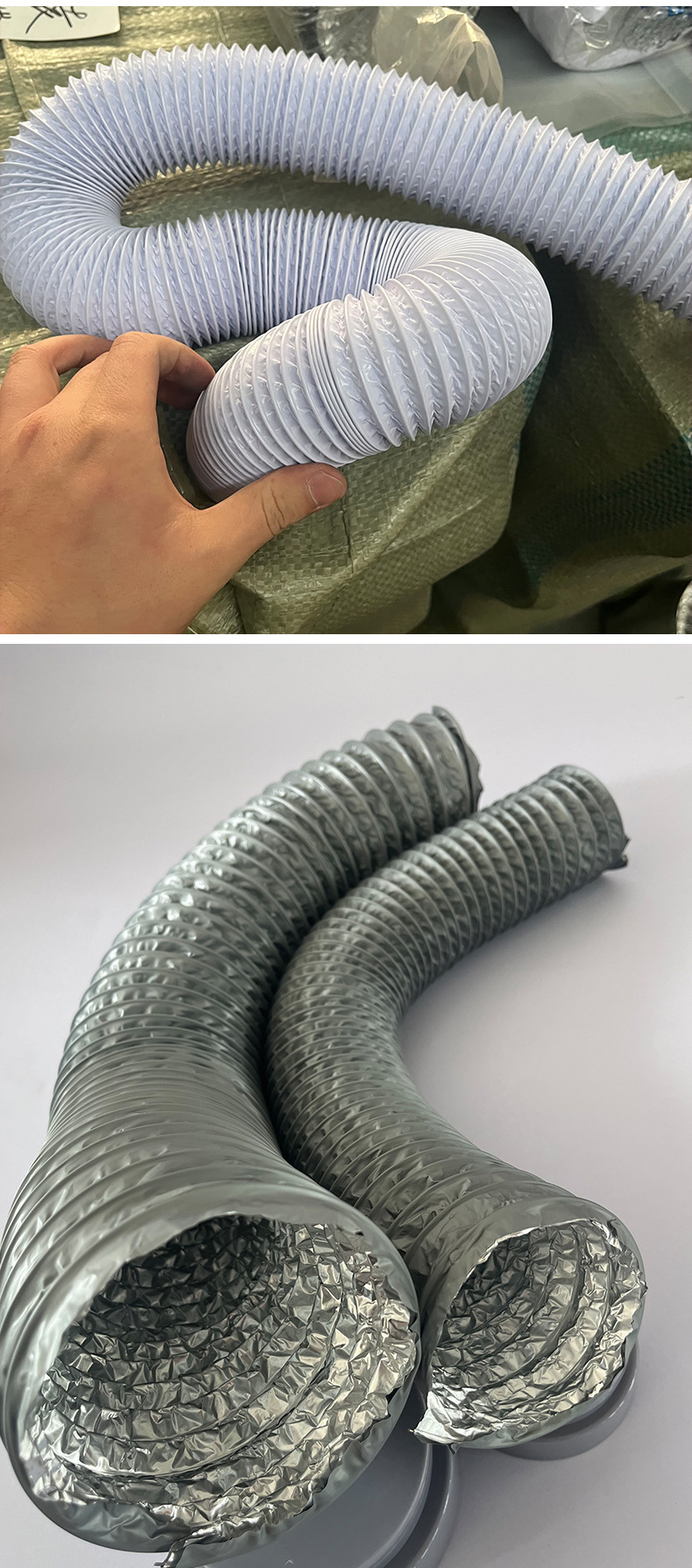 消煙ホース、新鮮空気増粘PVCアルミ箔複合ホース、空調換気、耐火・難燃アルミ箔ホース