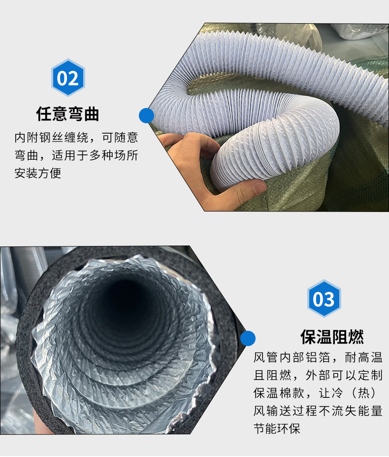 換気ダクト新風システムアルミ箔複合伸縮ホースレンジフードpvcダクト排気ファン排煙管