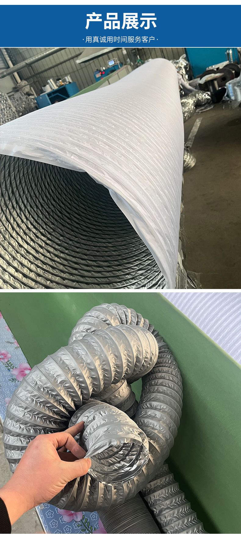 耐高温鋼線アルミ箔通風管厨房鋼線伸縮排煙管二重厚肉管メーカー卸売り