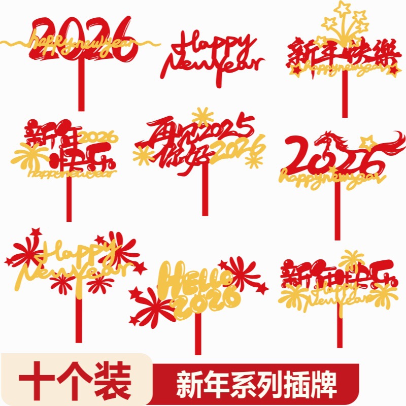 2026新年快乐蛋糕装饰亚克力插件hello2026跨年元旦新年烘焙插旗