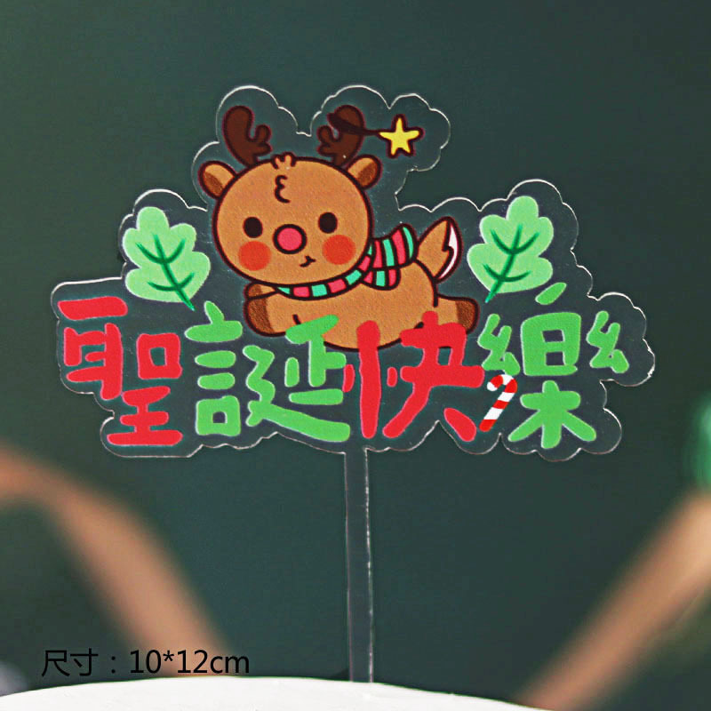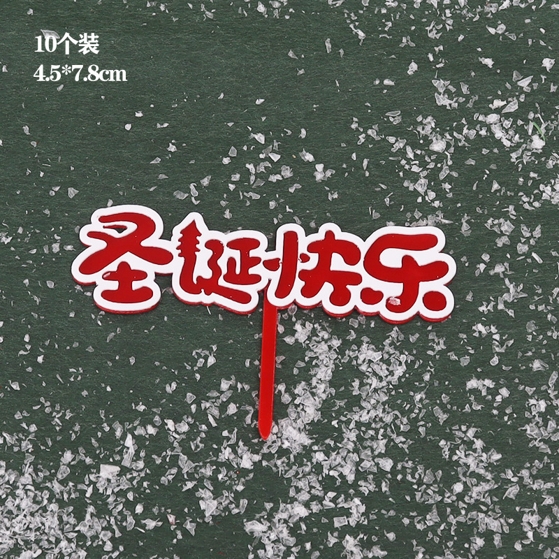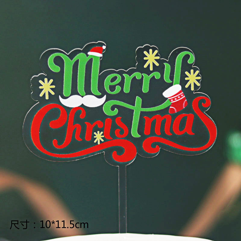 版权跨境ins风彩印圣诞快乐蛋糕插件圣诞亚克力蛋糕装饰派对用品