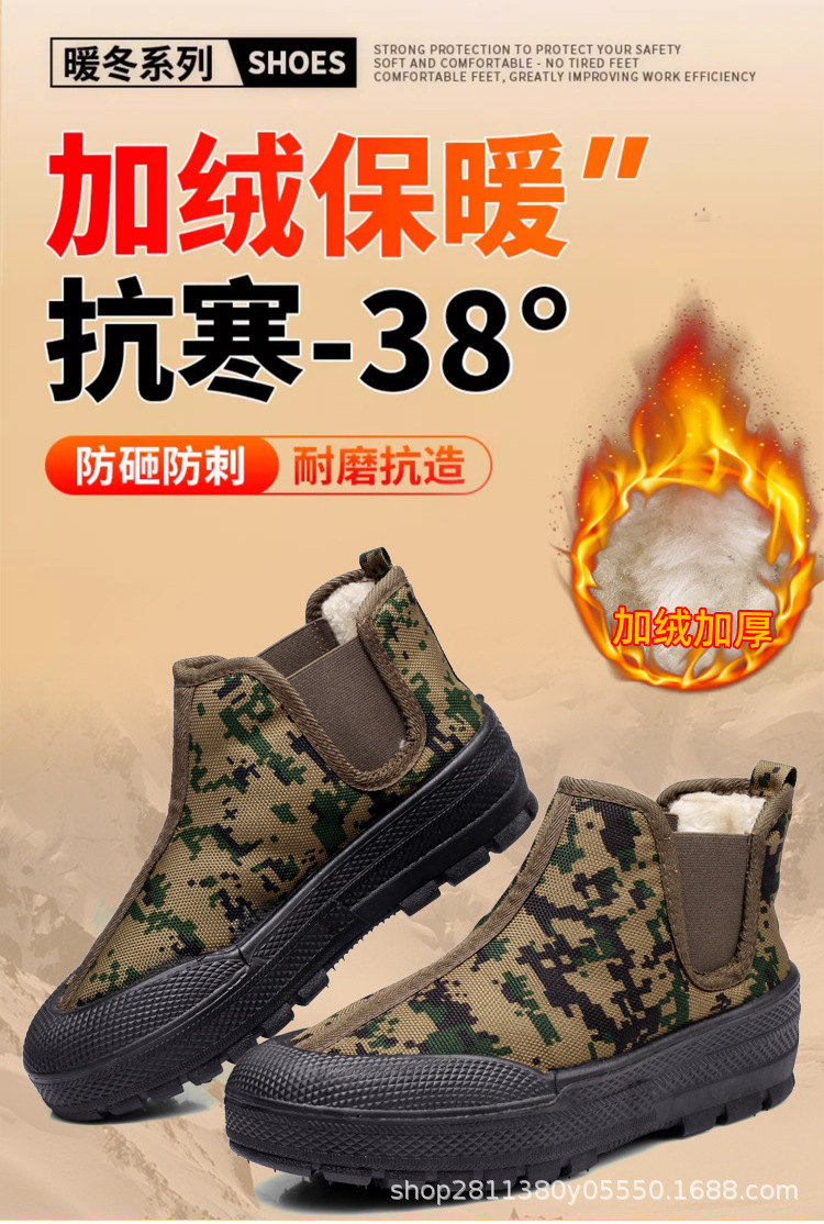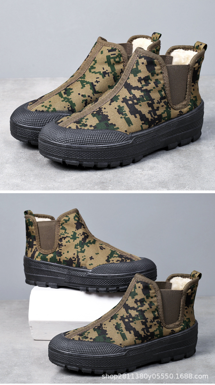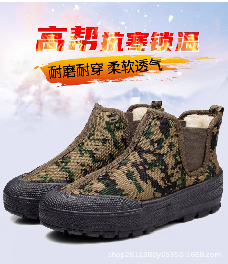 冬の工装靴は屋外の迷彩を訓練して滑り止めの耐摩耗性とベルベットを厚くして寒さに強い保温メーカーの直販をした