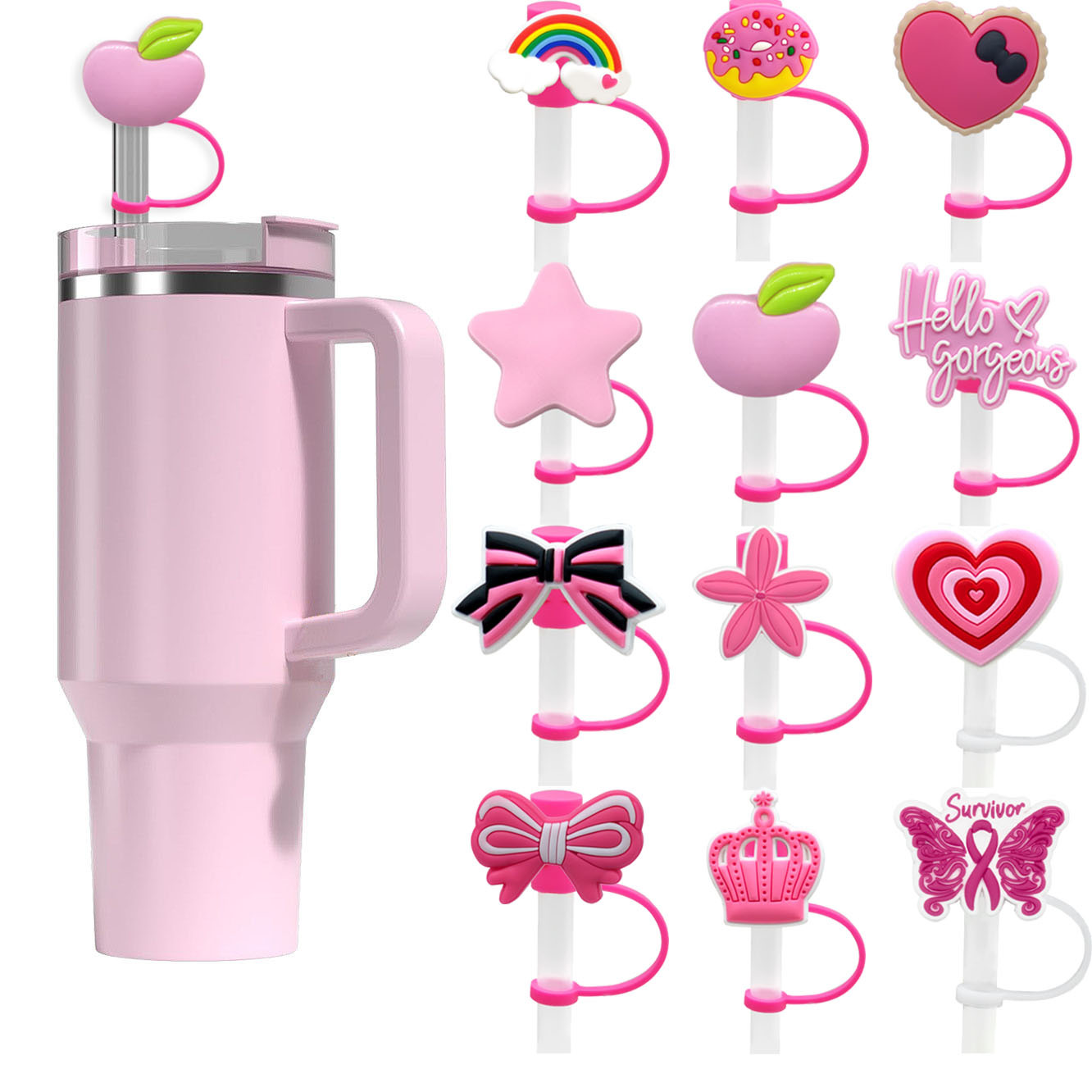 跨境热销粉色硅胶吸管帽Stanley水杯防尘套 个性奶茶杯吸管套配饰