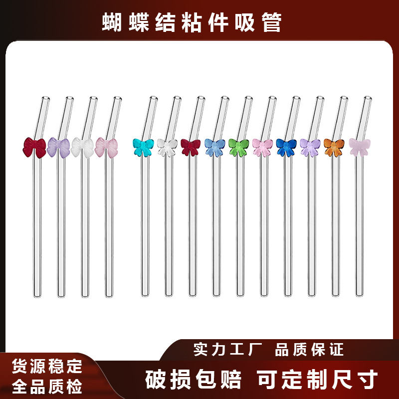 蝶結びガラスストロー、ネットセレブスタイル、売れ筋カスタマイズ可能セット、カラフルなストロー、ソース工場、売れ筋スポット