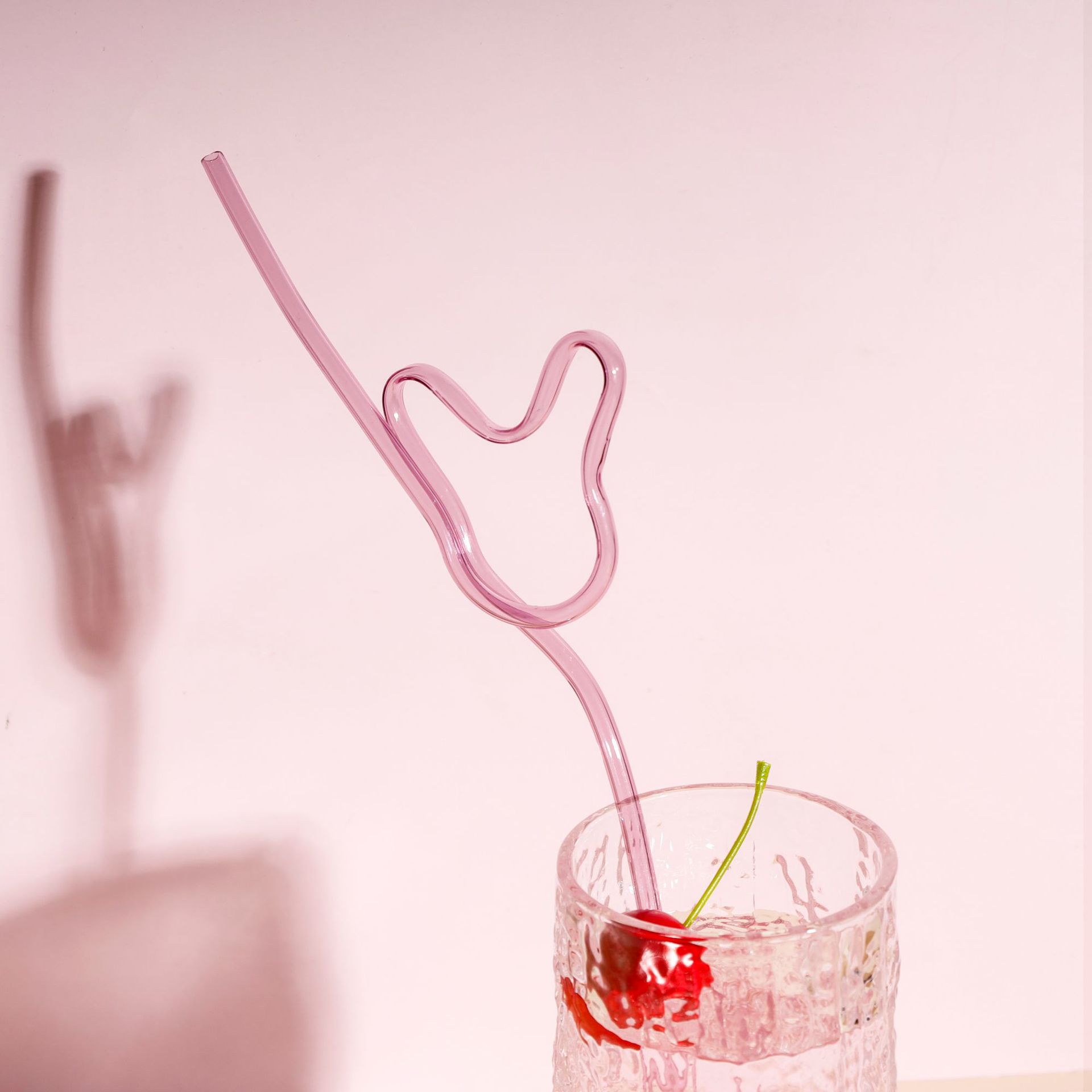 蝶結びのガラスストローの創意的な形は花にくっつきます。