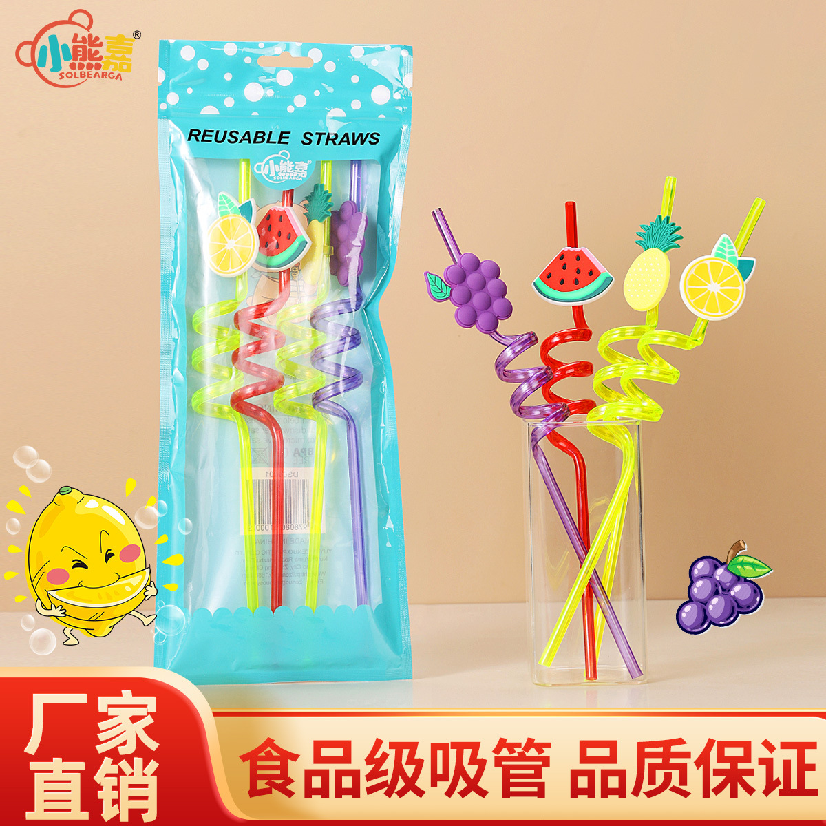 クロスボーダー Amazon PETG フルーツ型ストロー クリエイティブストロー 漫画ストロー プラスチックスパイラル型ストロー