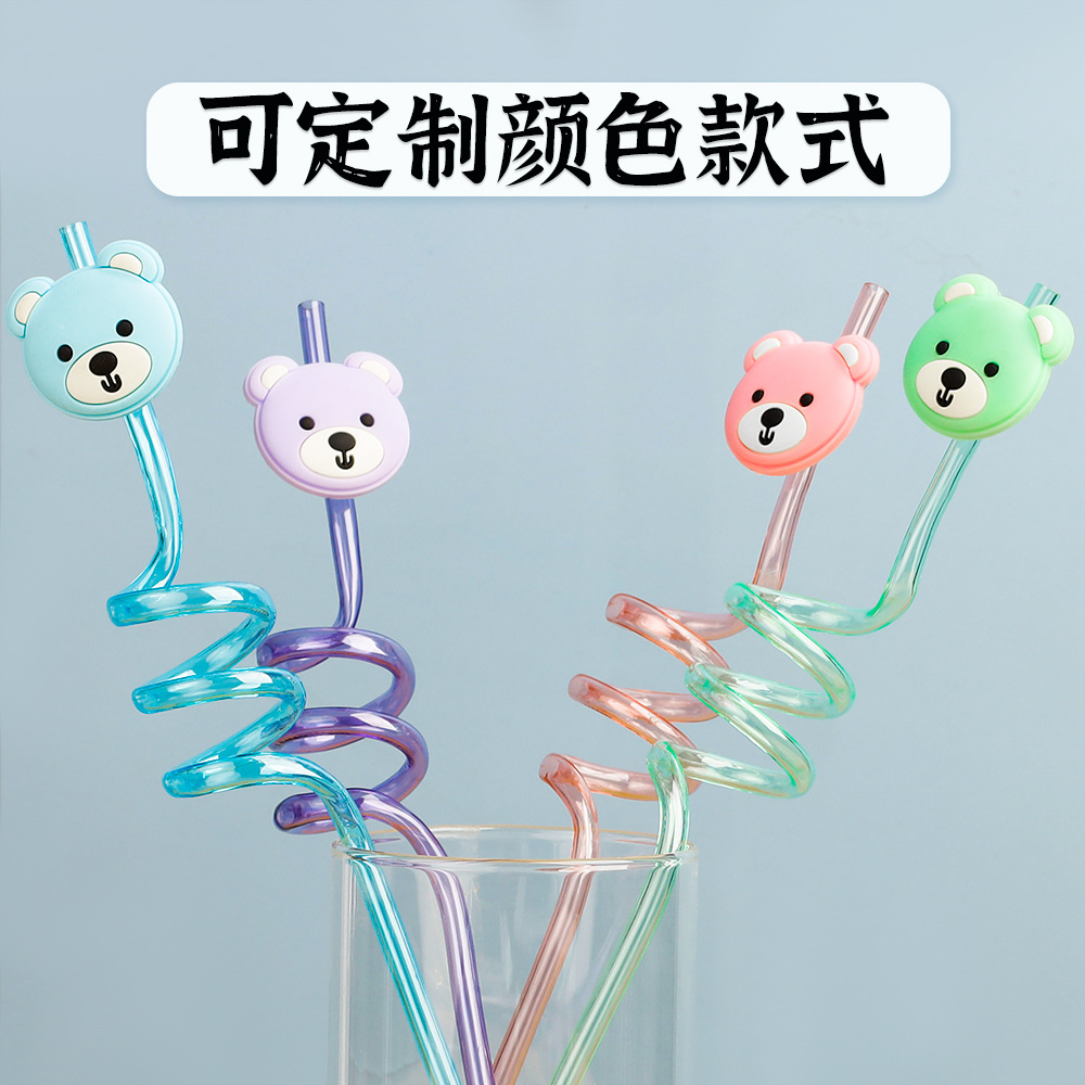 PETG螺旋吸管 带PVC卡通标绕管可重复使用塑料吸管厂家可定制吸管