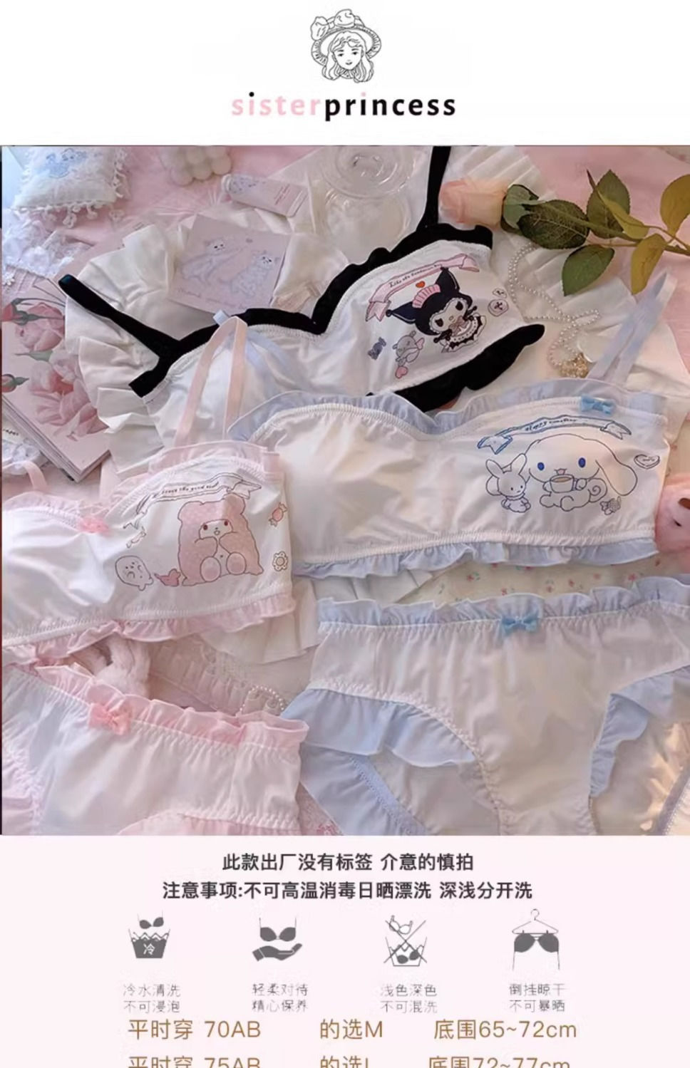 Lolitaロリータ下着女性少女ウサギ耳かわいい日系学生braスチールリングなし快適ソフト妹ブラジャー