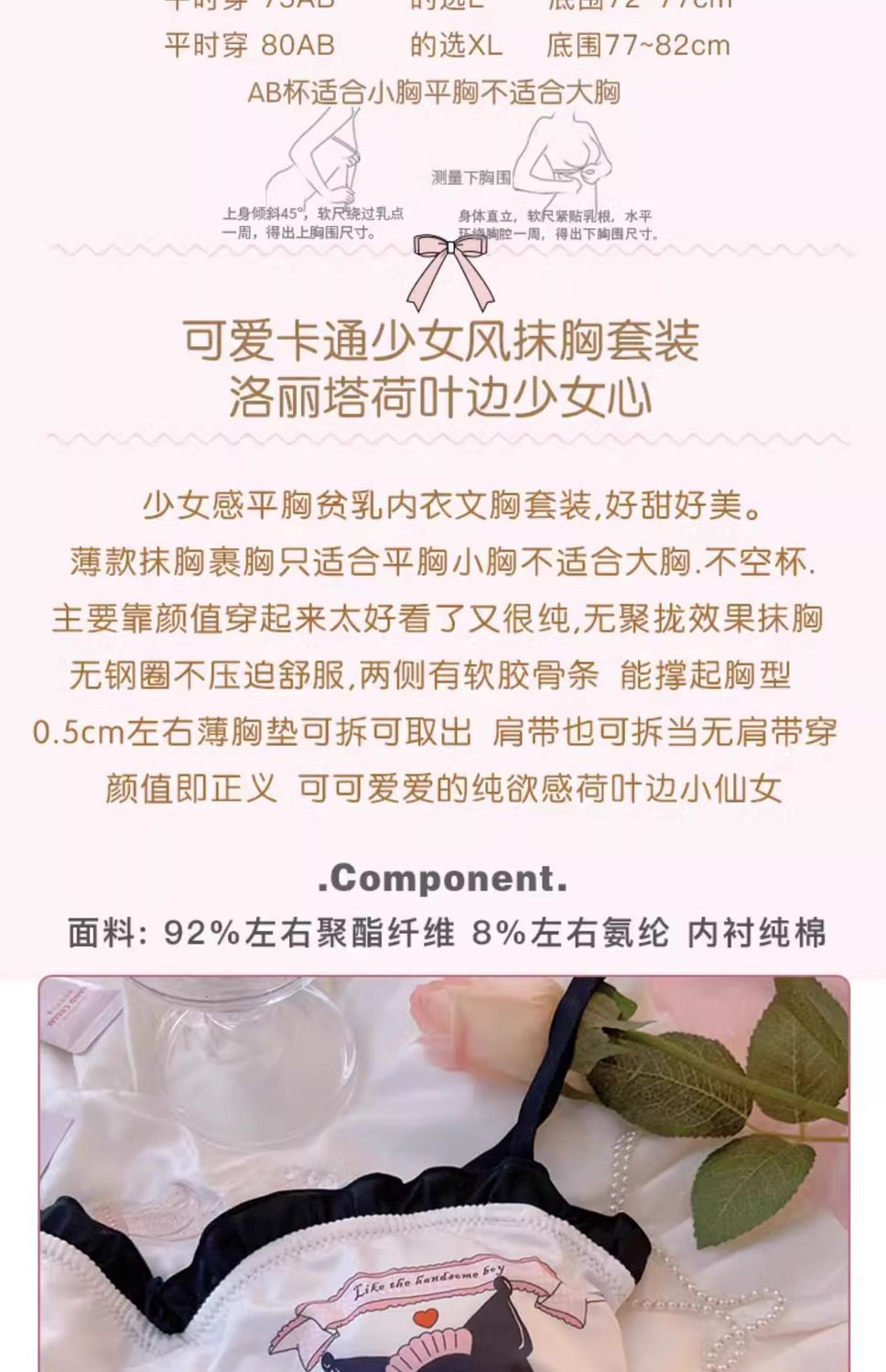 かわいい日系ロリータ少女下着レースの縁にスチールリングのない胸が集まって快適な三角カップのブラジャーセット