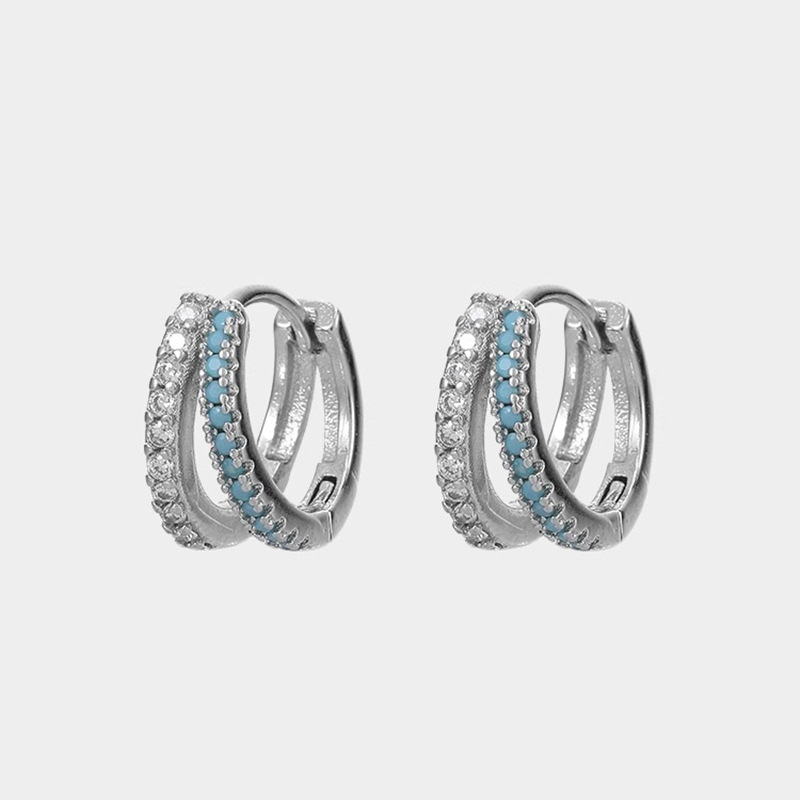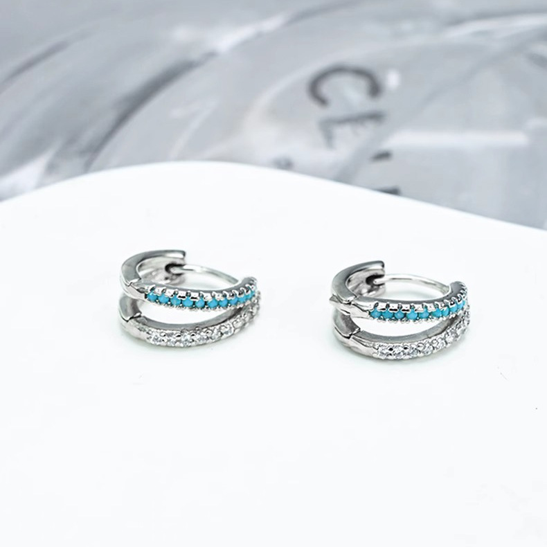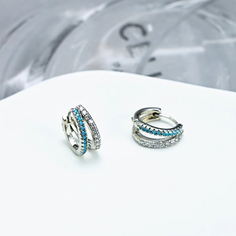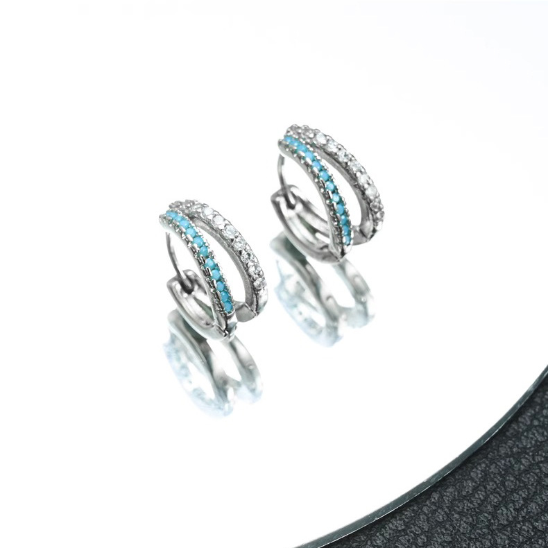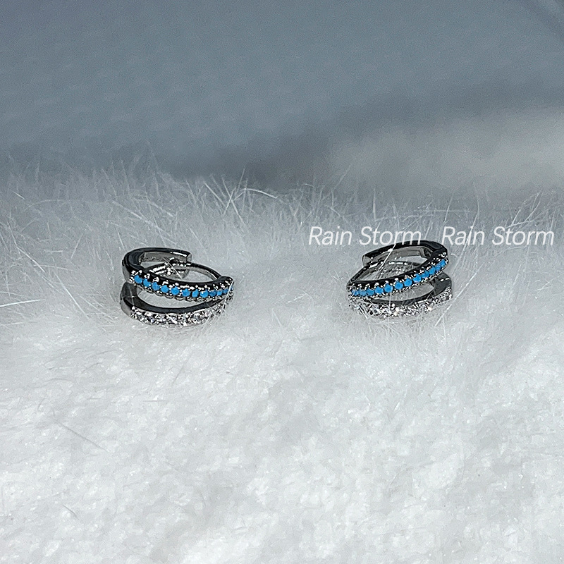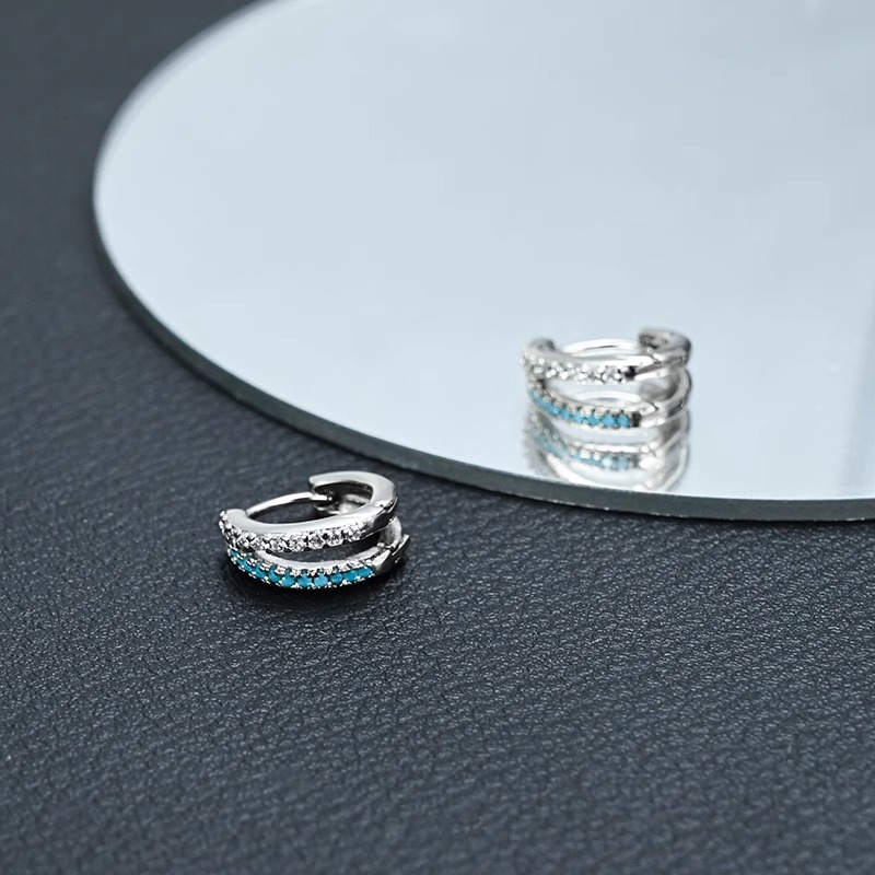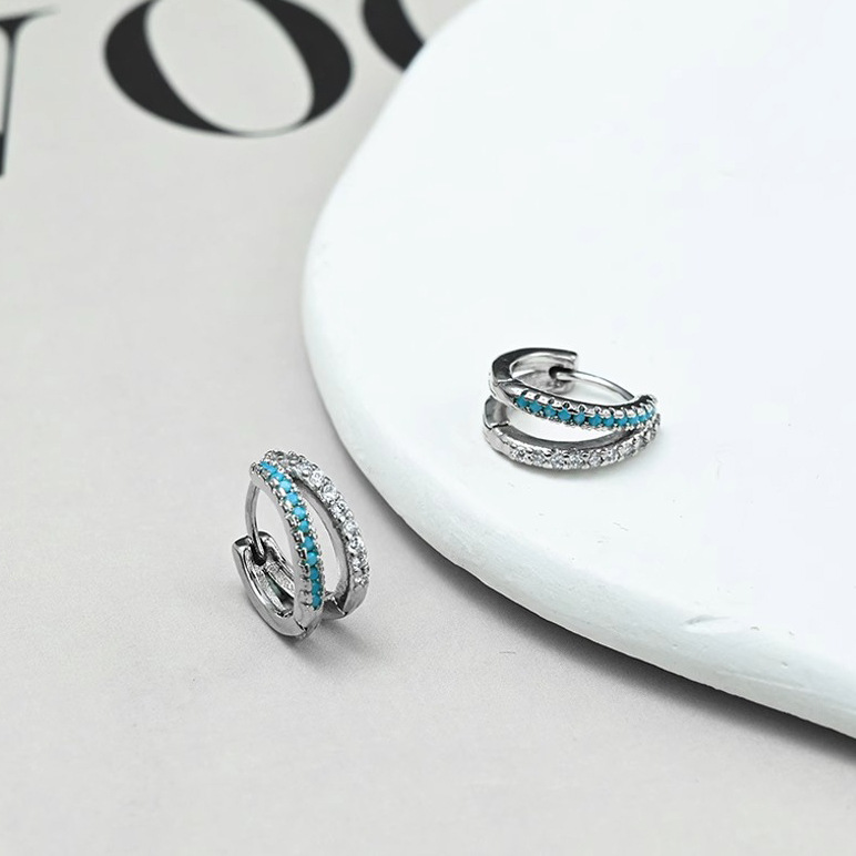 二重の青いジルコンのイヤリングの男性の潮の個性は百合の高級感の耳の骨の釘の軽い贅沢な潮流の耳の輪のファッションの装飾品です。