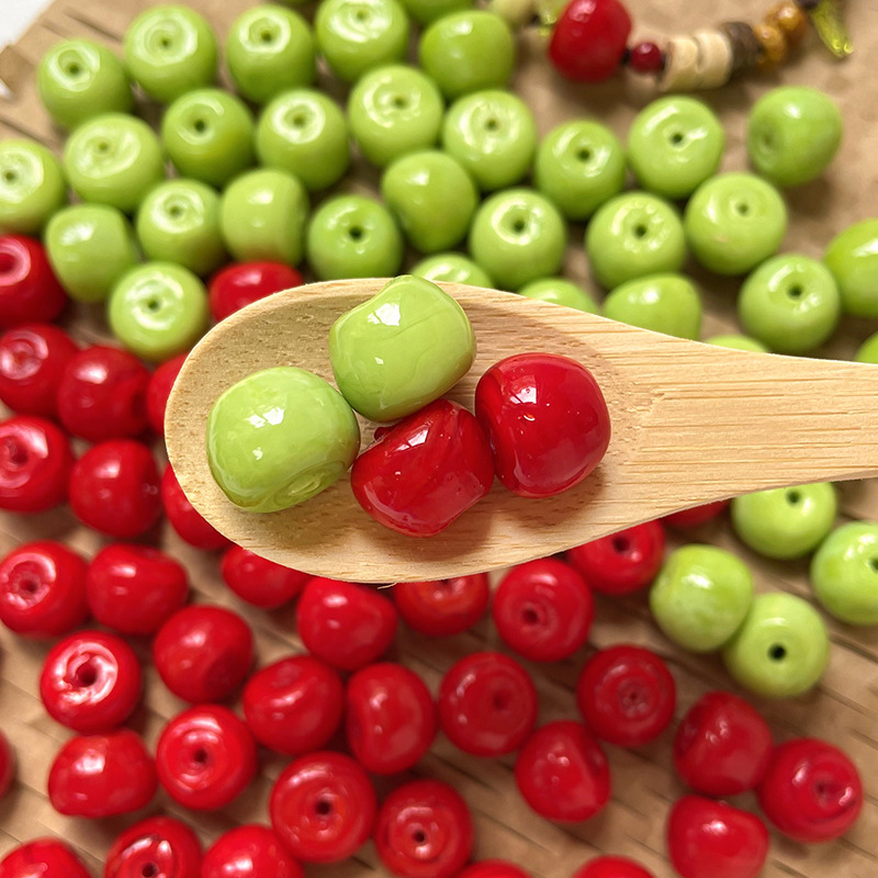 [リンゴ] グレーズドグリーンアップルレッドアップルビーズルースビーズDIY手作りブレスレットネックレスビーズ素材