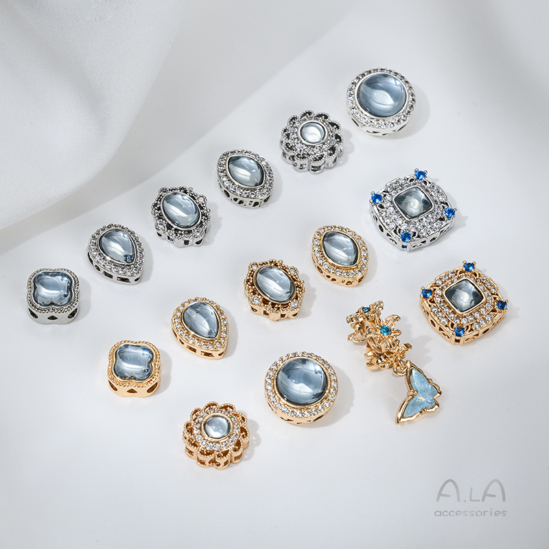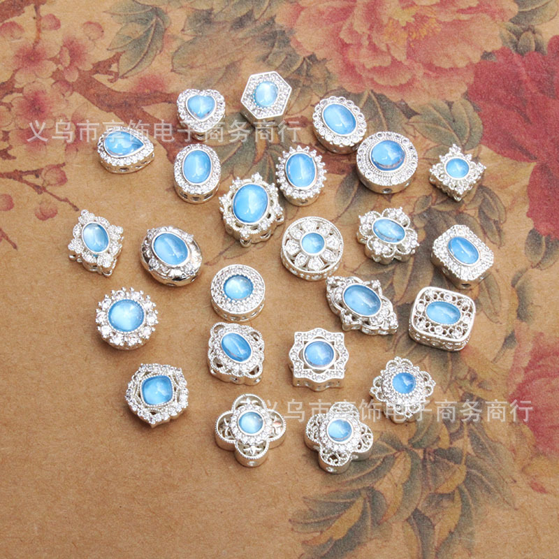 镶嵌海蓝宝锆石轻奢隔珠散珠镂空吊坠DIY串珠手链项链隔片配件珠