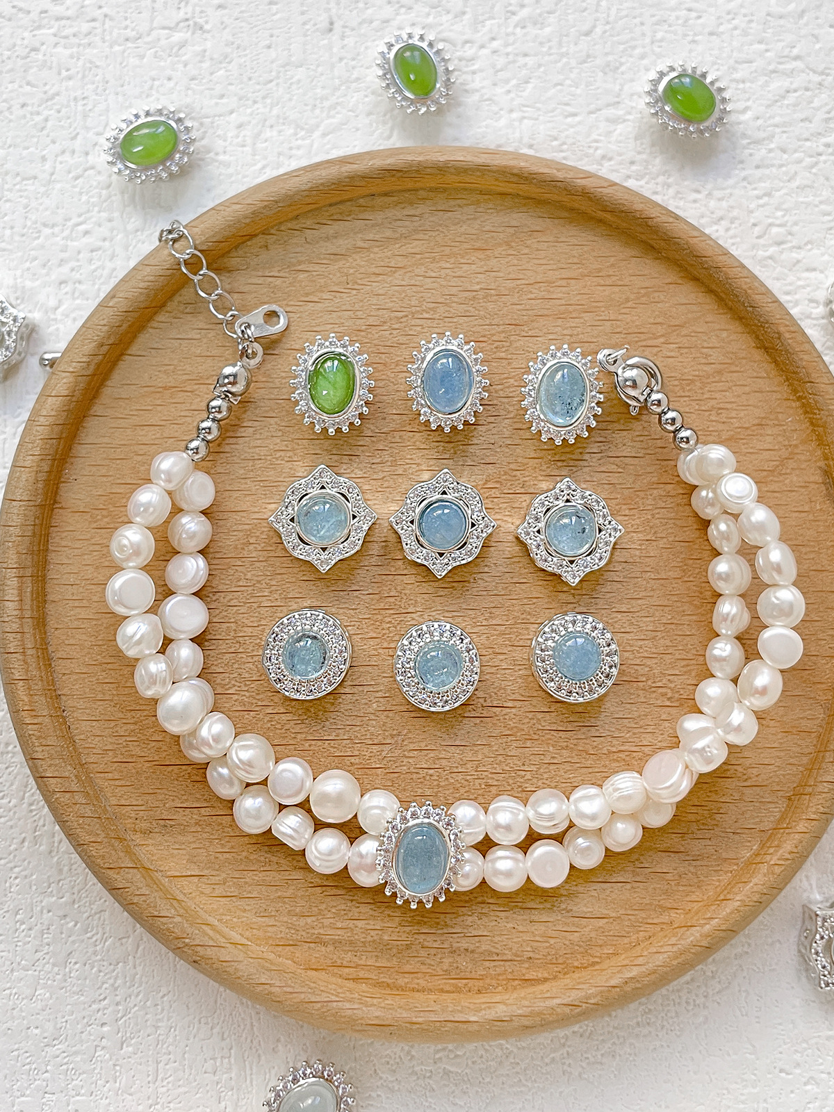 メーカー卸売りの新型S925銀モザイク天然海藍宝diyシンプルアクセサリー部品ビーズ材料