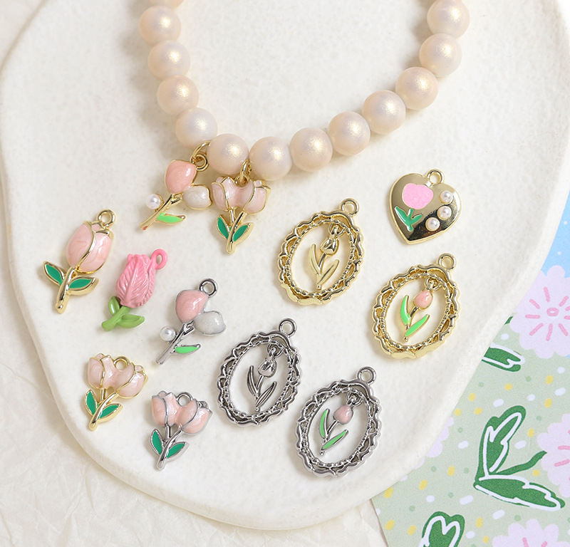 Ins大衆ネット赤チューリップ合金ペンダントdiy手作りアクセサリー手ネックレス耳飾りアクセサリー材料