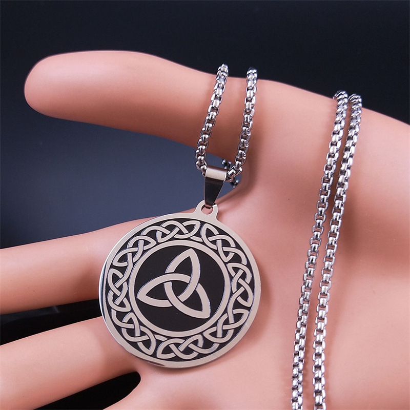クロスボーダー復古欧米神聖な幾何学生命の花のネックレス女性男性ステンレス円形項ペンダントネックレス
