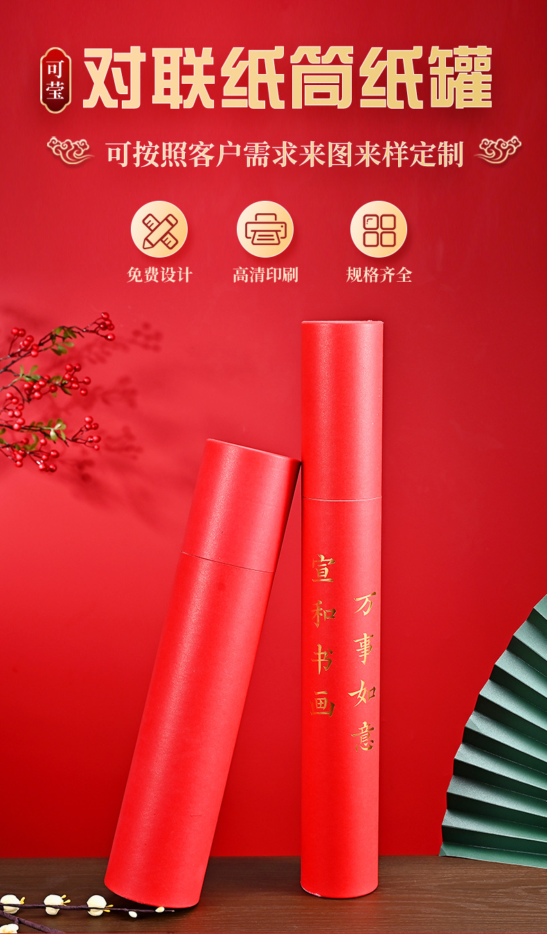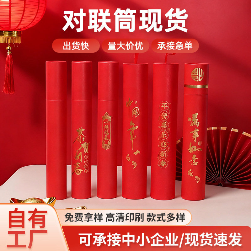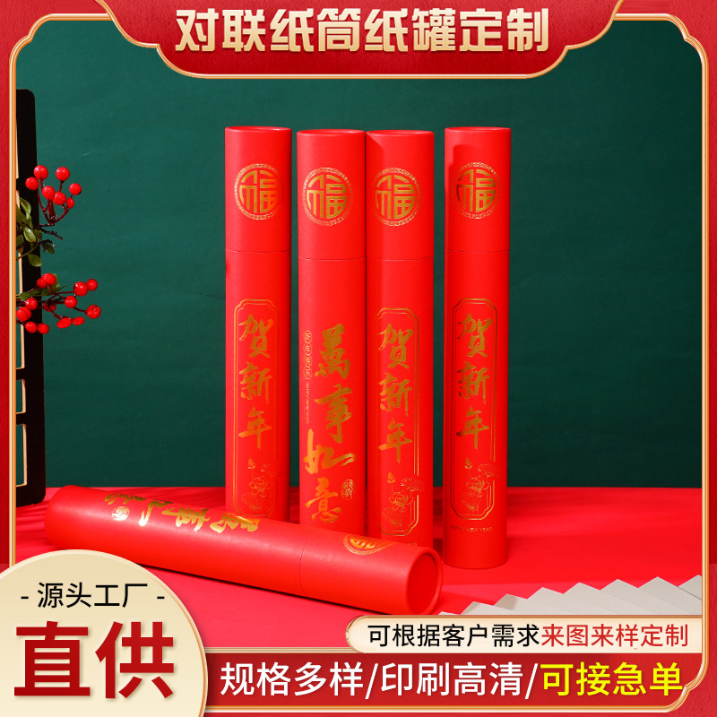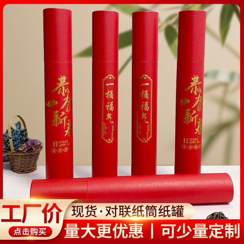 现货对联纸筒定制彩印圆筒茶叶罐包装筒对联挂历新年红色喜庆春联