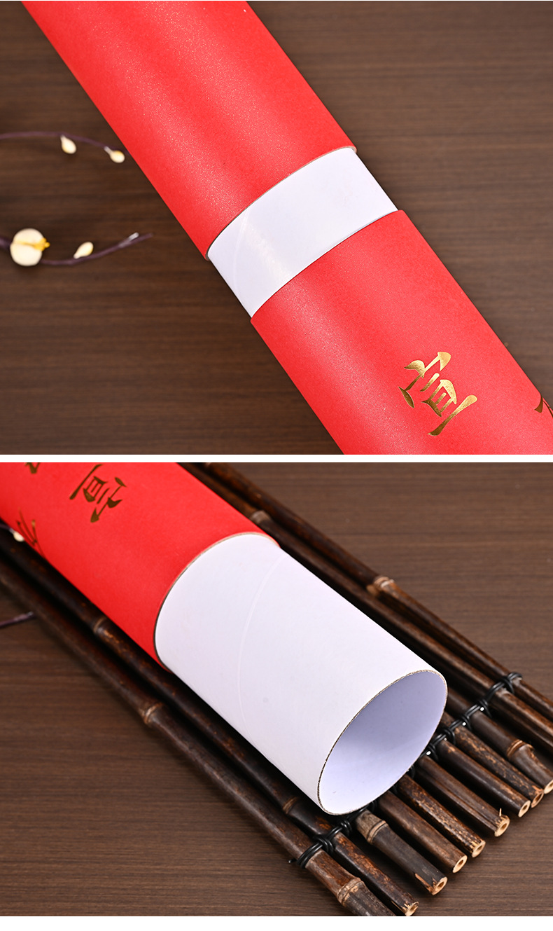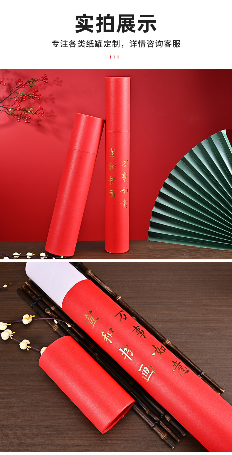 现货春节对联纸筒烫金印logo新年春联圆筒包装盒挂历字画纸罐定制