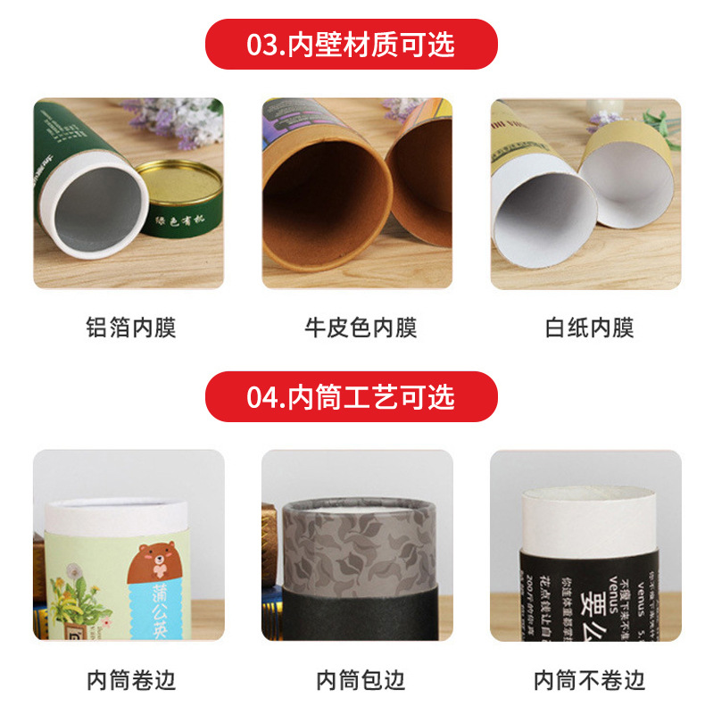 クラフト紙缶カスタム化粧品アロマ円形紙筒精油鍼灸茶葉密封紙管汎用包装箱