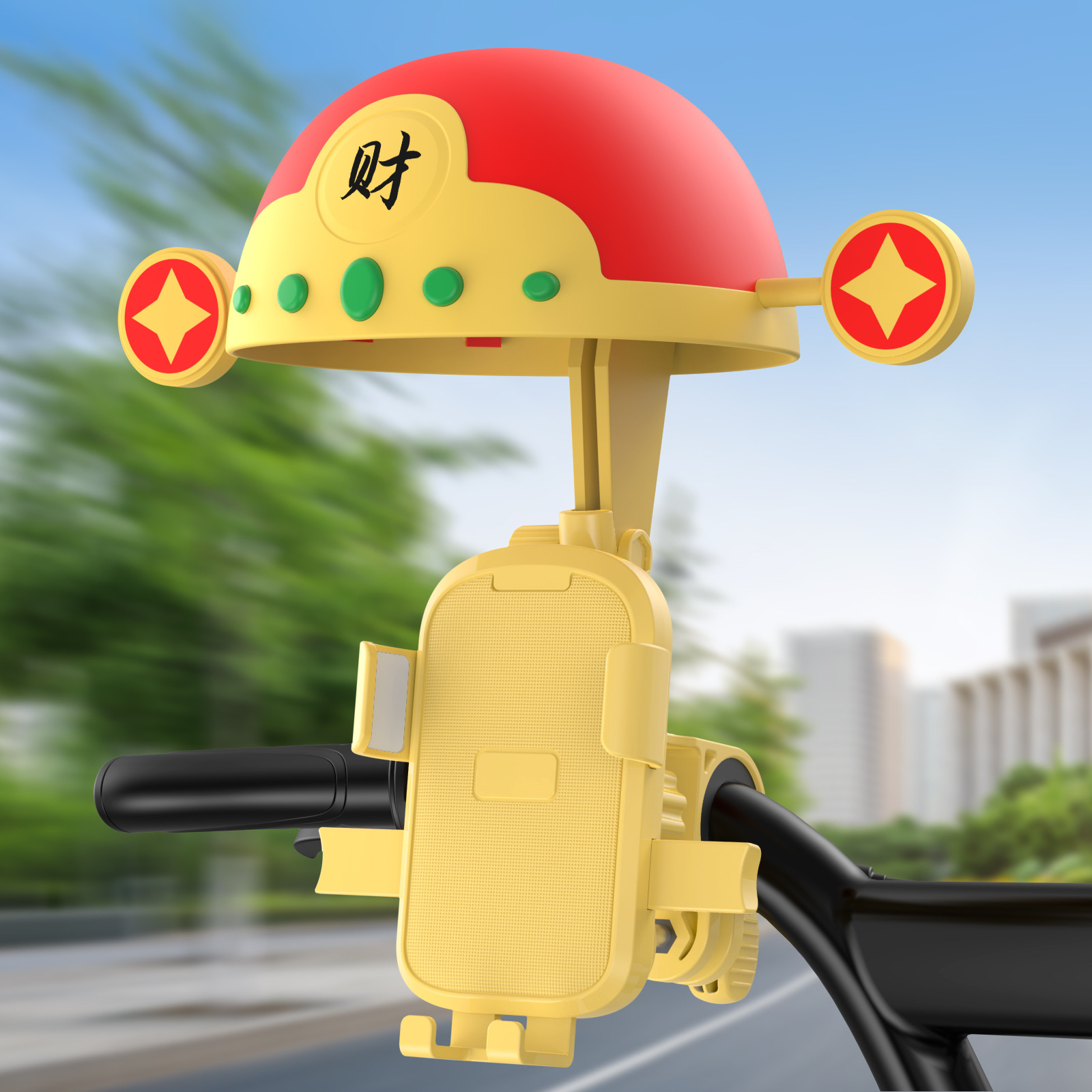 テイクアウトの騎手の電気自動車のオートバイの財神の帽子は日光の雨の携帯電話のスタンドの車のナビゲーションの携帯電話のスタンドを防ぎます。