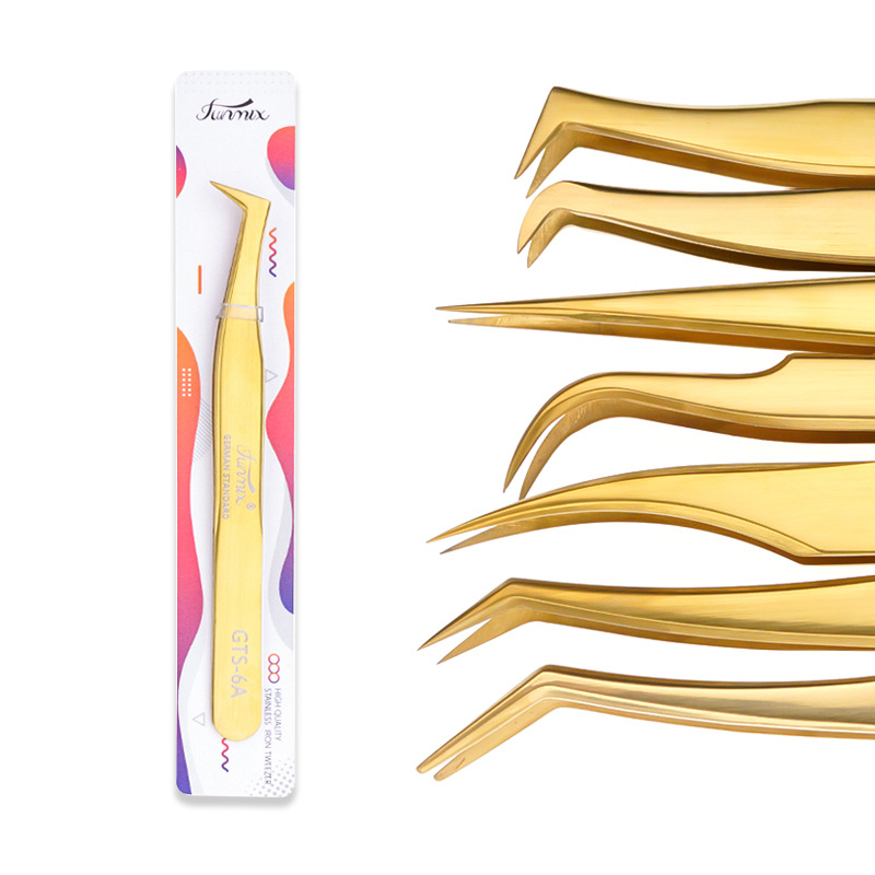 FUNMIX彩色假睫毛镊子镜光 美睫嫁接镊子开花金羽夹 精密睫毛夹