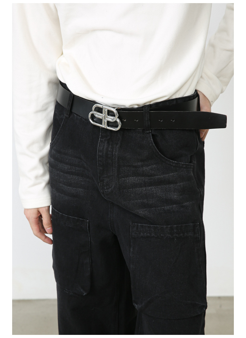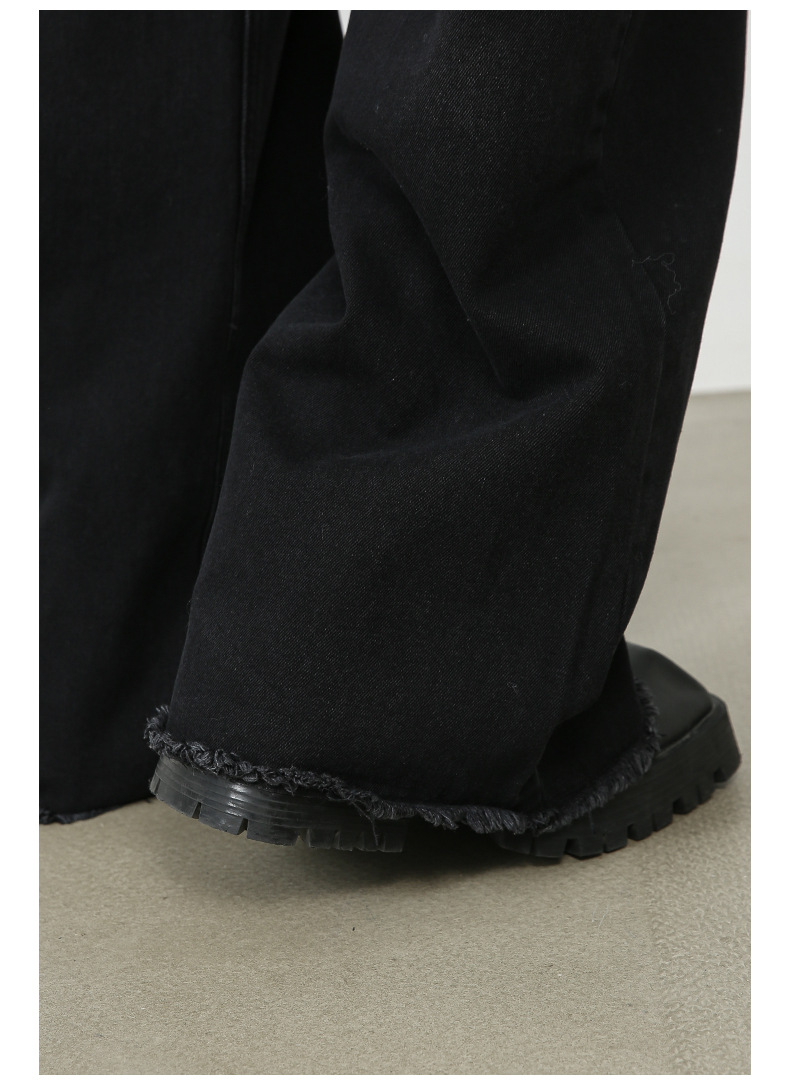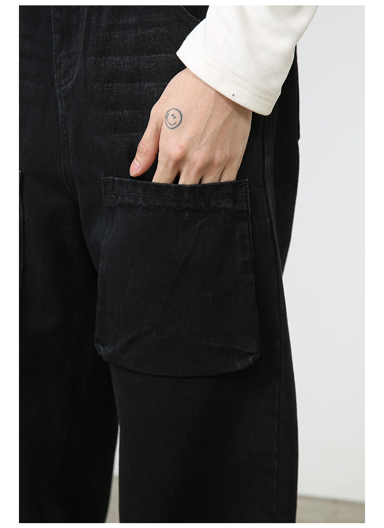 nirben牛仔|多排扣丹宁黑色直筒牛仔裤男潮牌宽松百搭阔腿长裤子