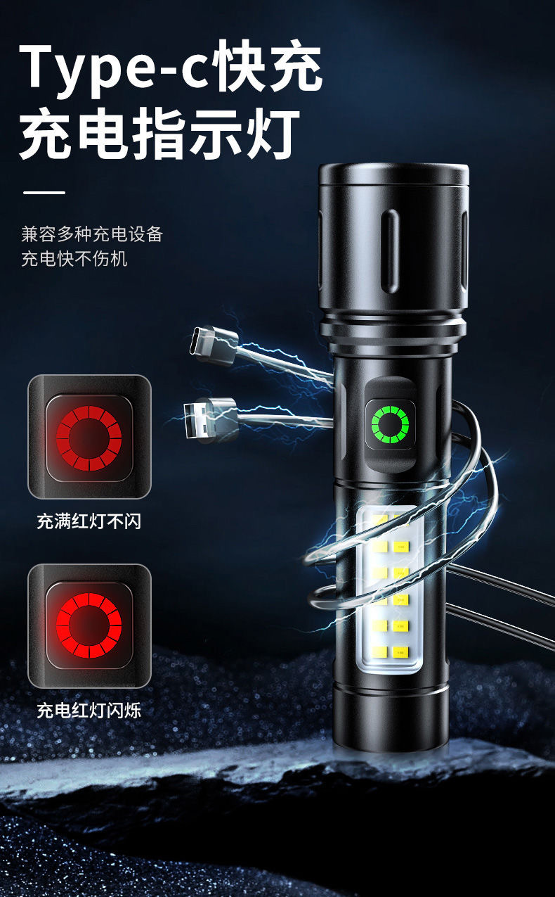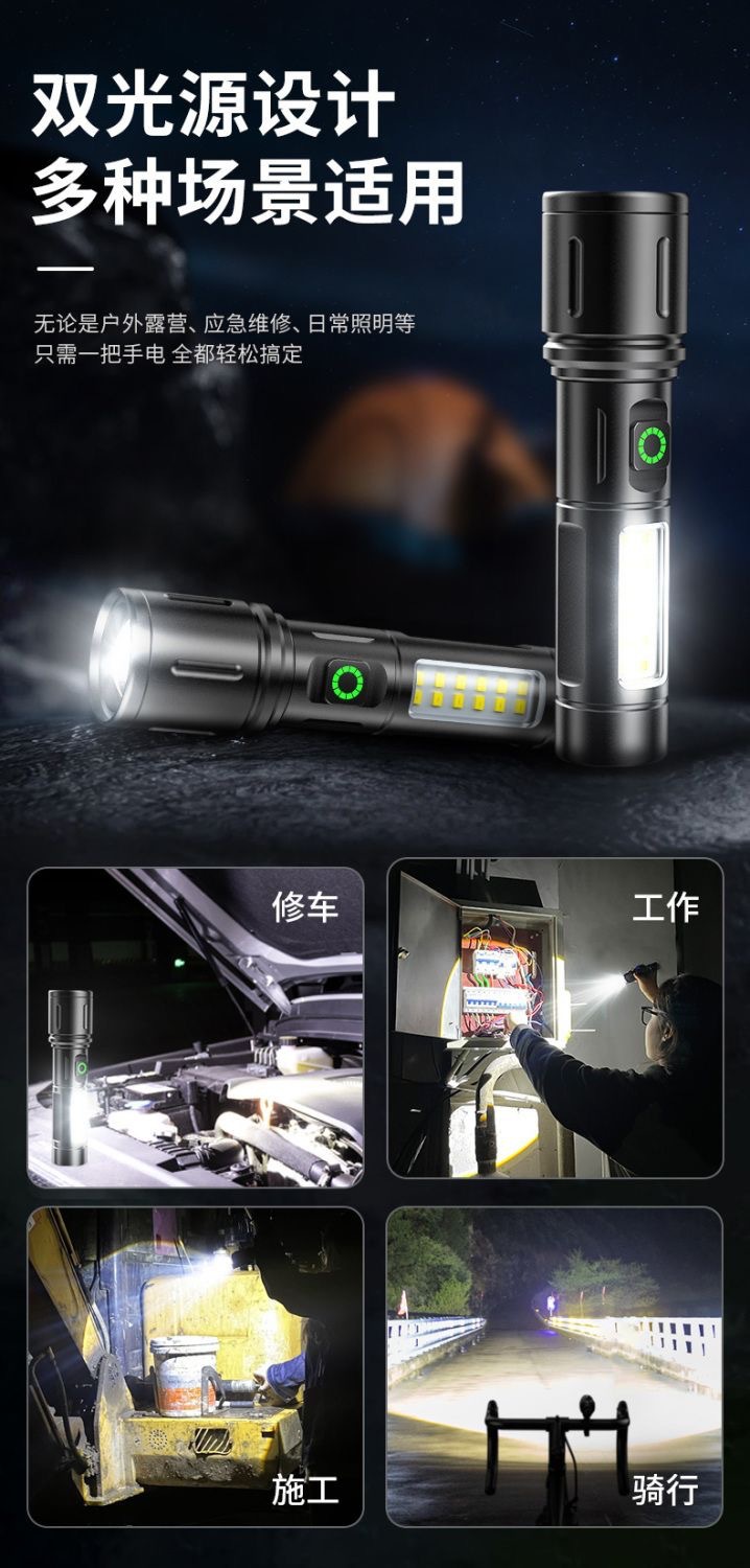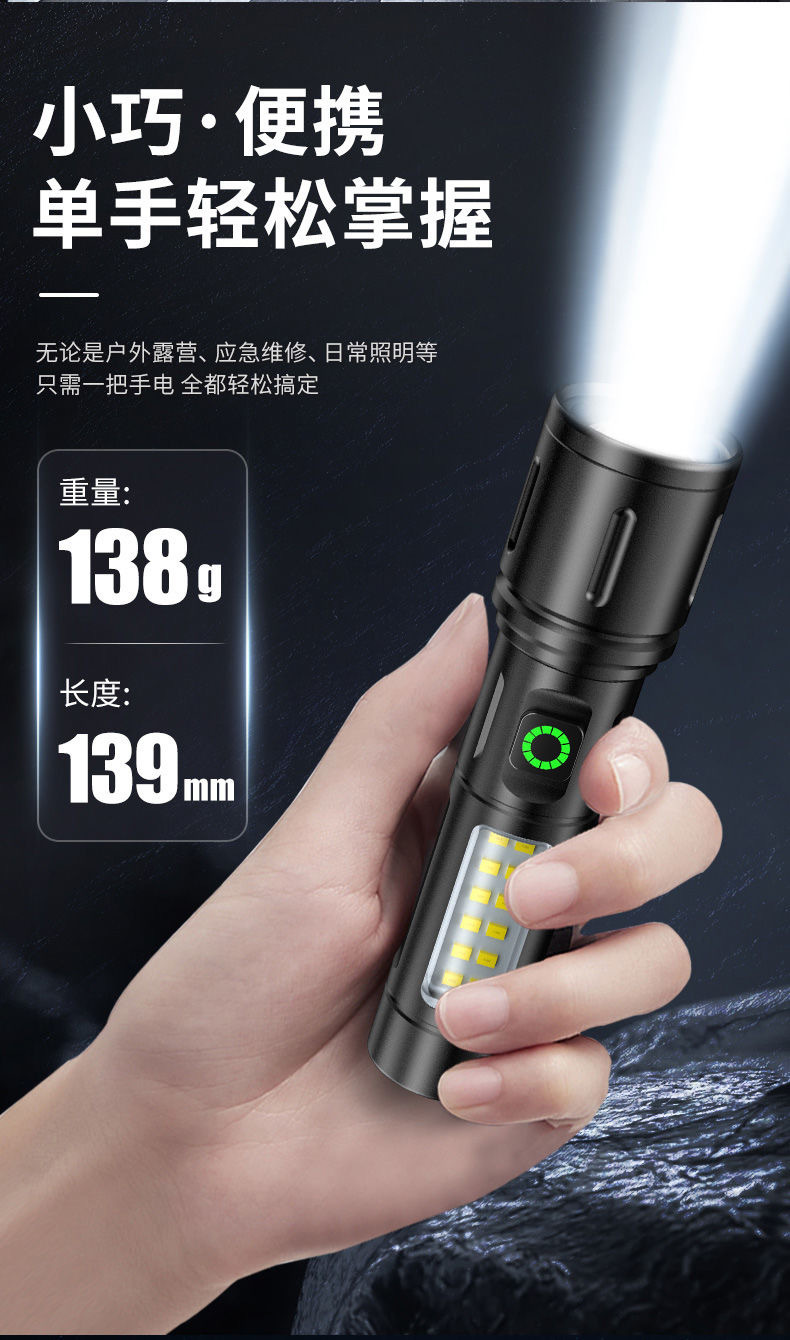 クロスボーダー超明るい白レーザー懐中電灯COBサイドライト作業灯伸縮ズーム携帯アルミ合金照明懐中電灯