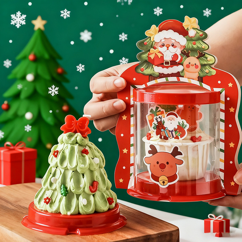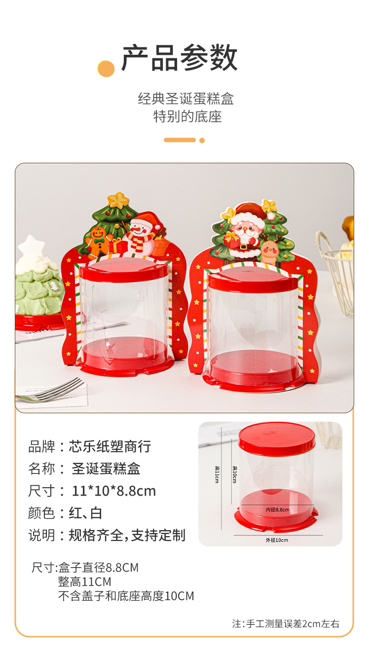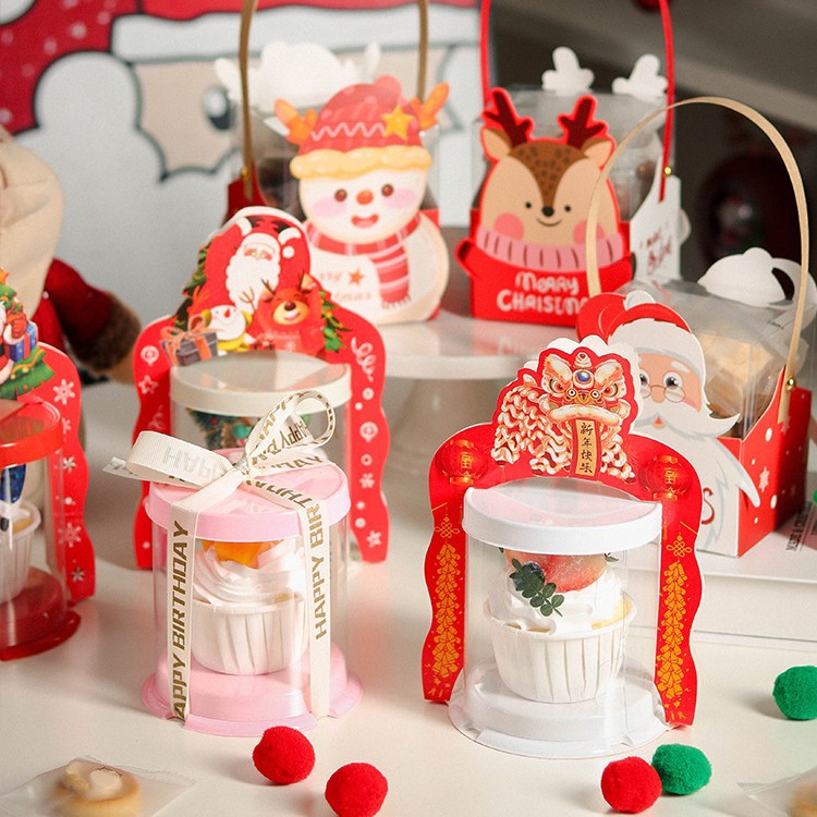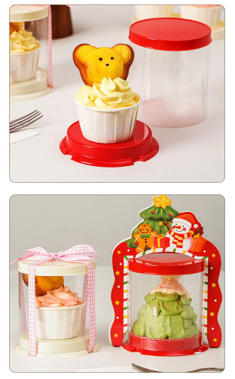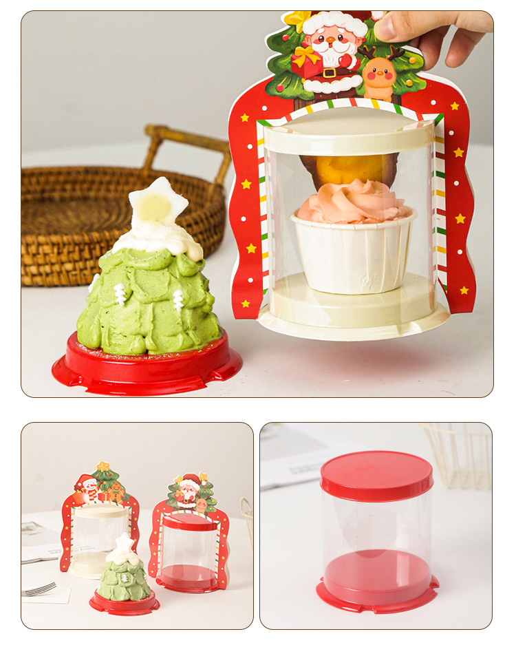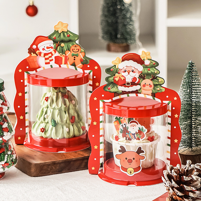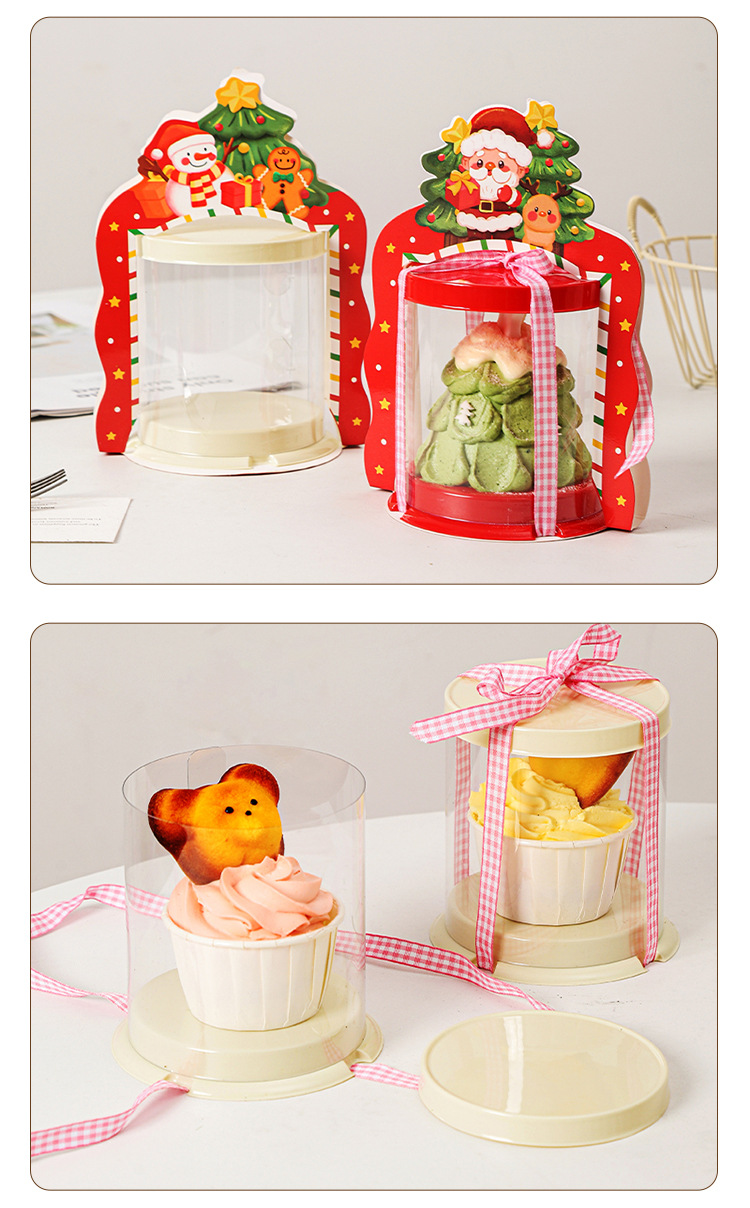 圣诞节2寸蛋糕盒纸杯蛋糕包装盒装饰杯子迷你小甜品透明打包盒子
