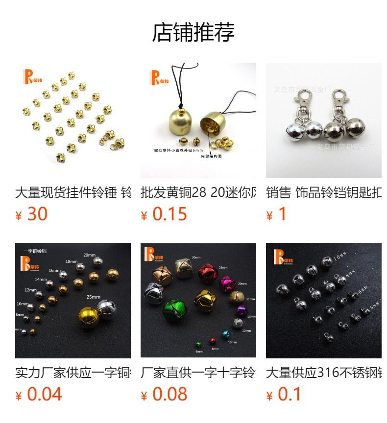 挂绳黄铜铃铛金属风铃及风铃diy材料配件防盗铃圣诞小铃铛挂件