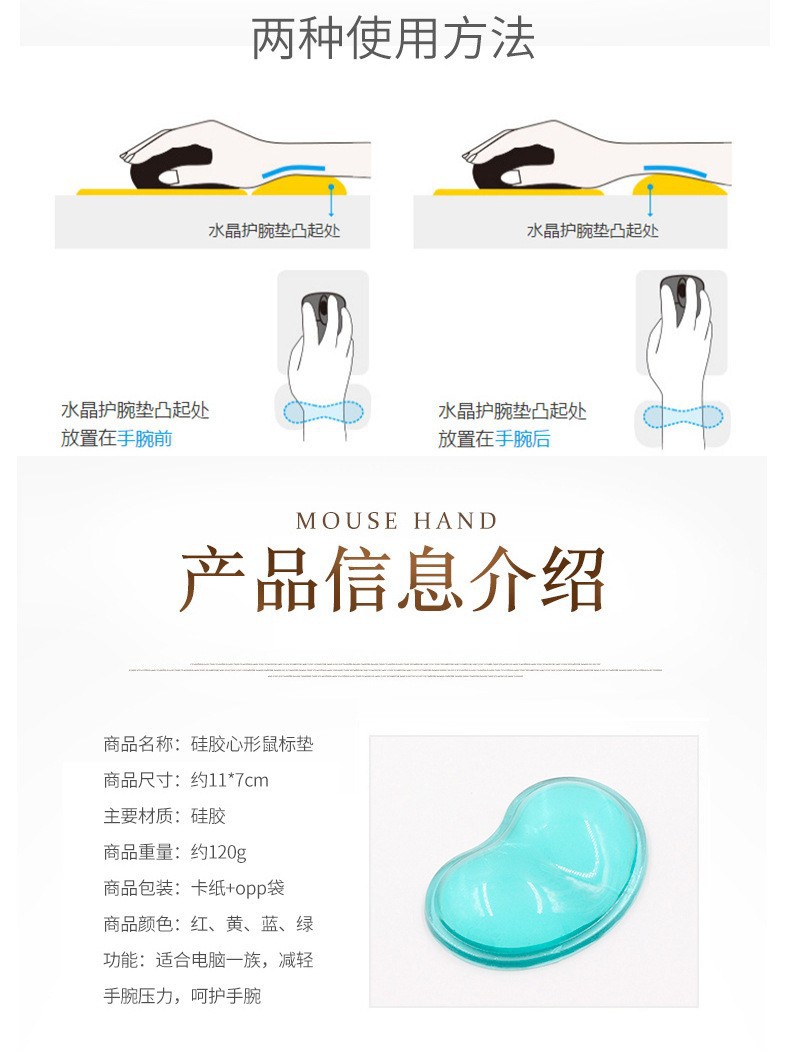 水晶のシリカゲルマウスマットは手首を保護します。