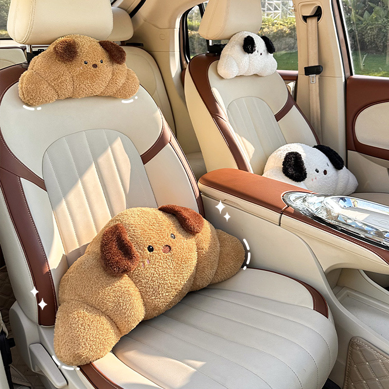 2025新品汽车头枕护颈枕创意毛绒车载座椅靠枕腰枕可爱车用腰靠