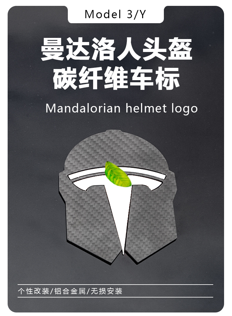 テスラ新型モデルY3YLマンダロリアンヘルメット車ロゴカーボンファイバーアクセサリー個性的な立体デザインに適しています