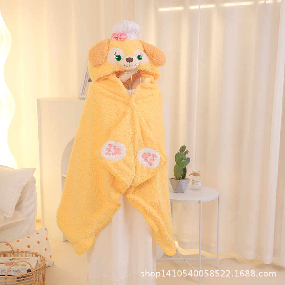 漫画シェフ子犬フード付きマント毛布学生かわいいマント昼寝マントオフィスエアコン毛布