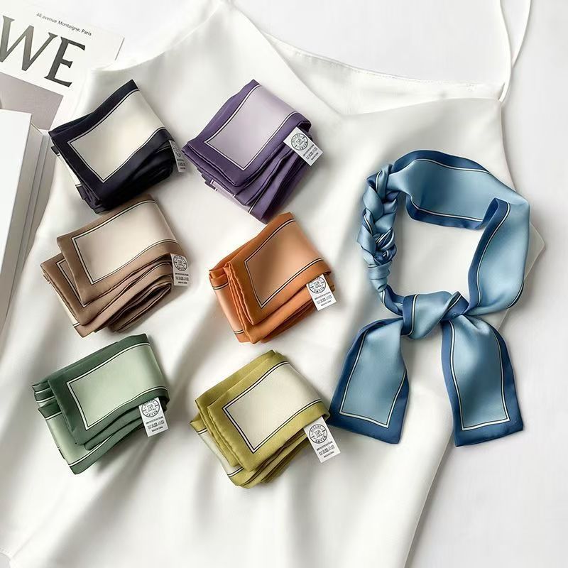 夏季赫本风纯色丝巾长条丝巾女高级感百搭绑手腕绑包包扎马尾飘带