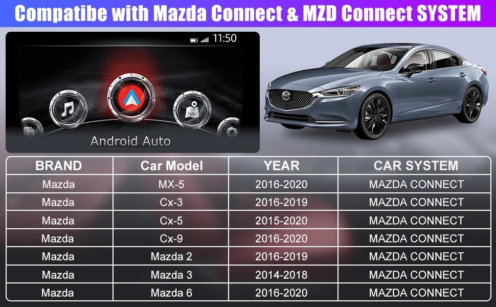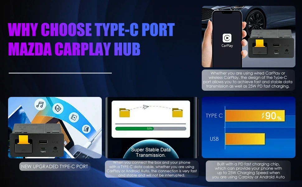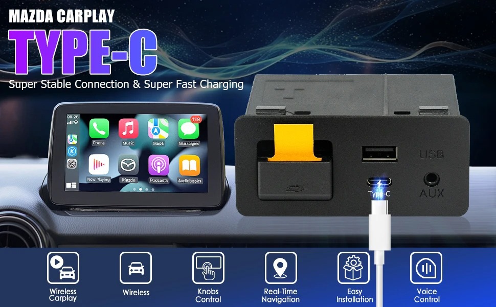 マツダ海外悦聯アップグレード無線carplay android auto TYPE-Cインターフェイスを適用