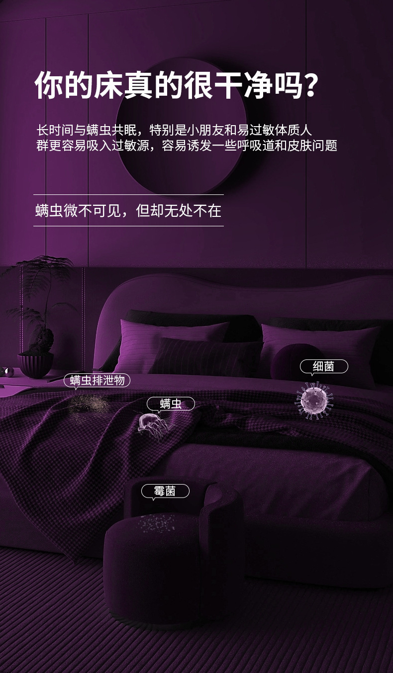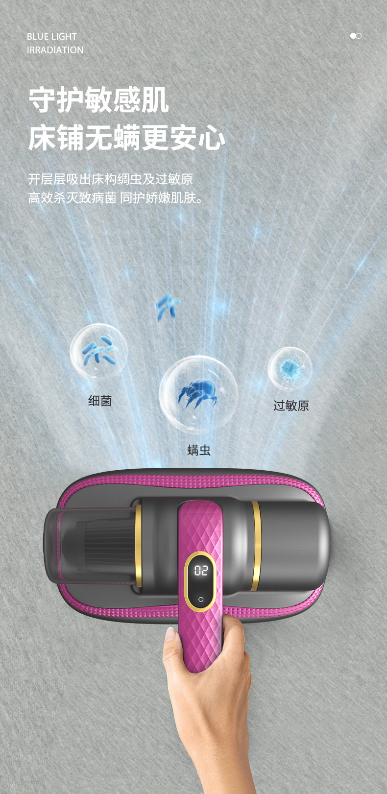 床上大吸力除螨仪 无线手持小型吸尘器 紫外线拍打床铺去螨机