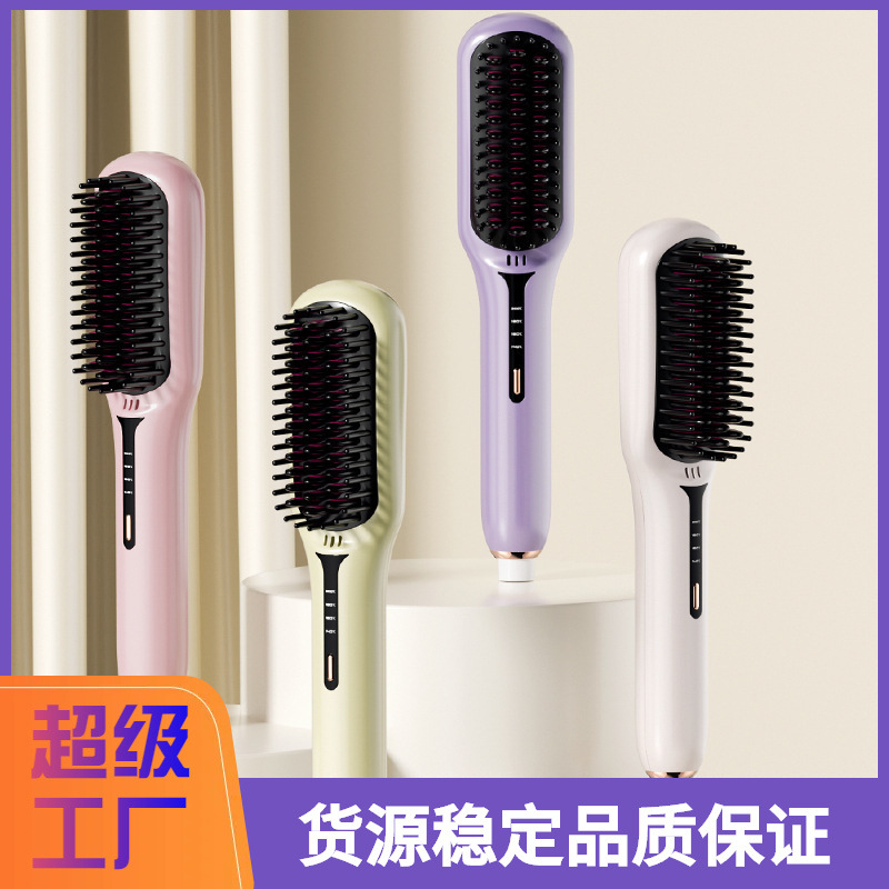 新型ミニ無線直髪櫛電気巻き櫛内ボタンは髪を傷つけない怠け者巻き棒マイナスイオン直髪器