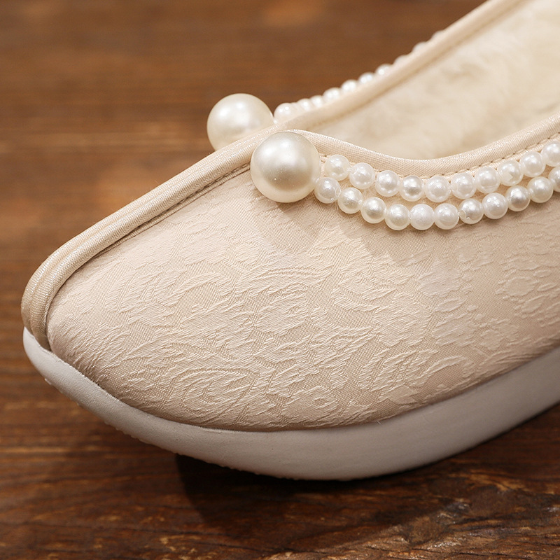 漢服の靴の女性の数珠の古風の中で高くなる丸い頭の柔らかい底の靴は雲に登って明るい馬のスカートのジャカードの靴を履きます。