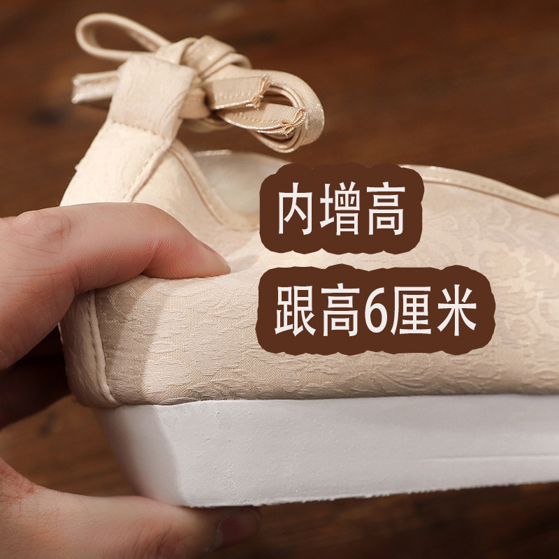 2025春秋の新型古風松餅の厚い底の漢服の靴の刺繍と馬のスカートの茶服の国風の白い靴