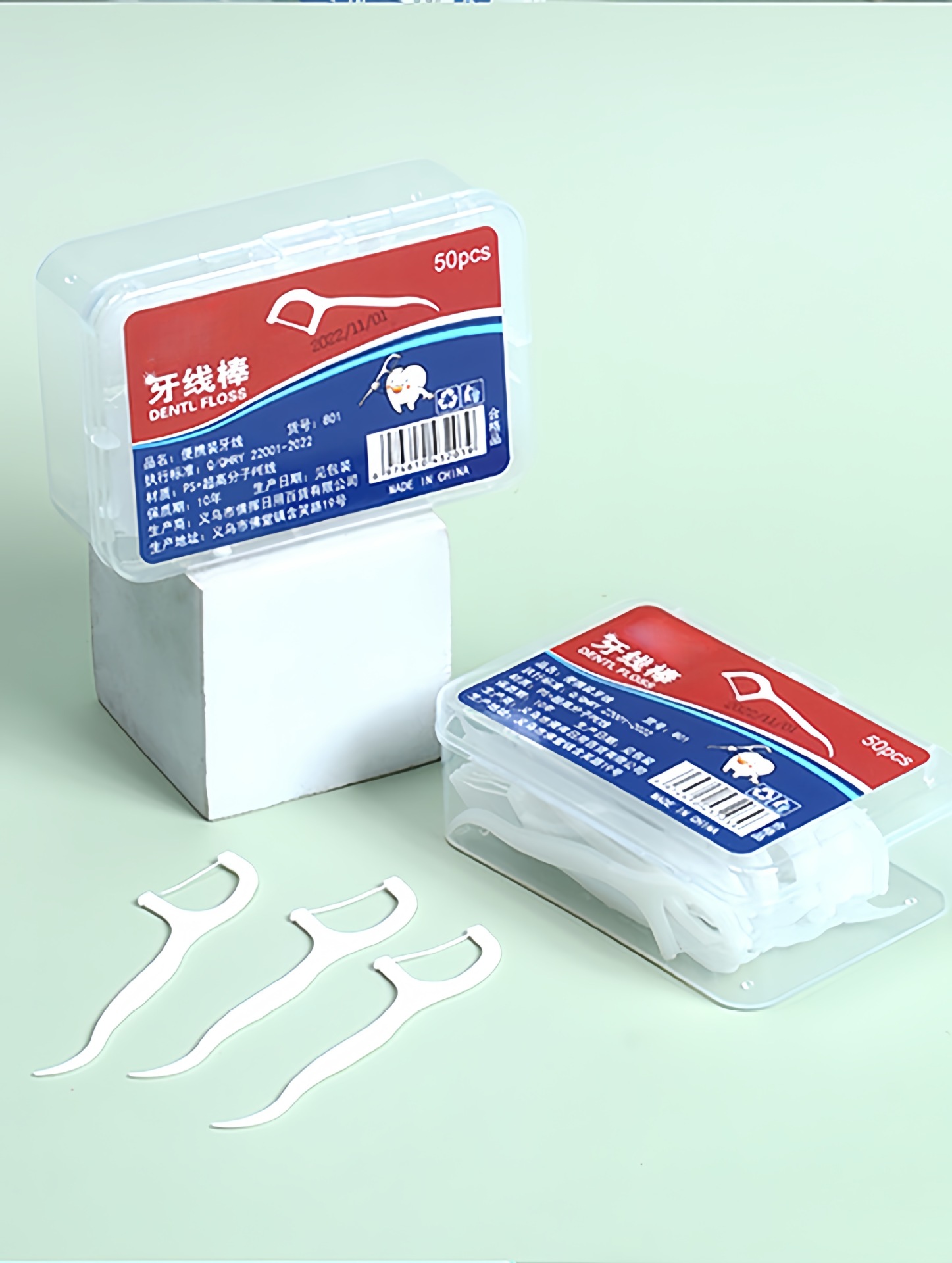 二重線の歯の糸の50本は使い捨ての弓形のプラスチックの歯の糸を詰めて携帯します。