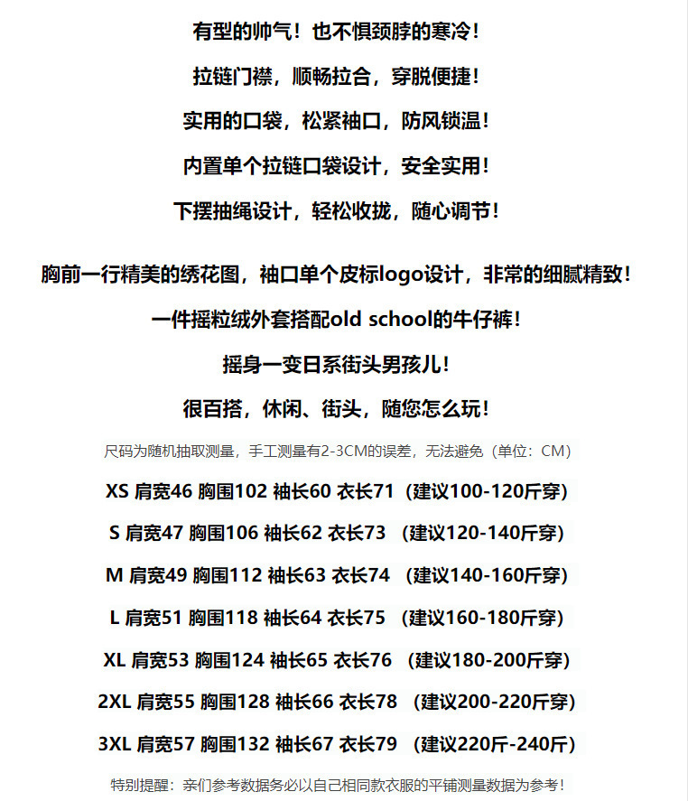 Xs (100-120斤),S(120-140斤),M(140-160斤),L(160-180斤),Xl (180-200斤),2xl (200-220斤),3xl (220-240斤)