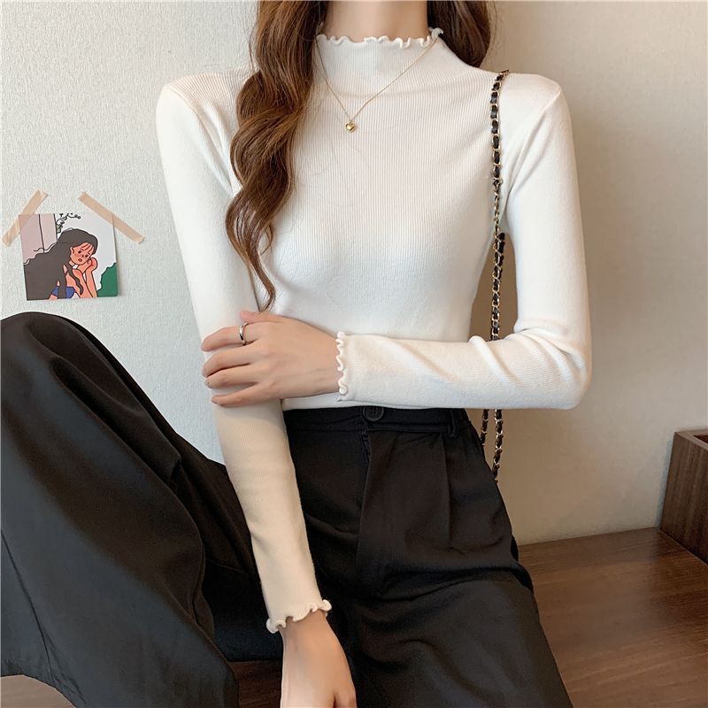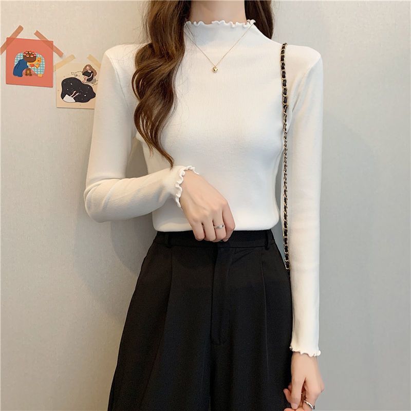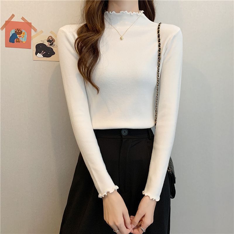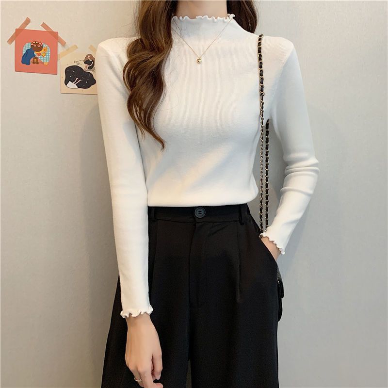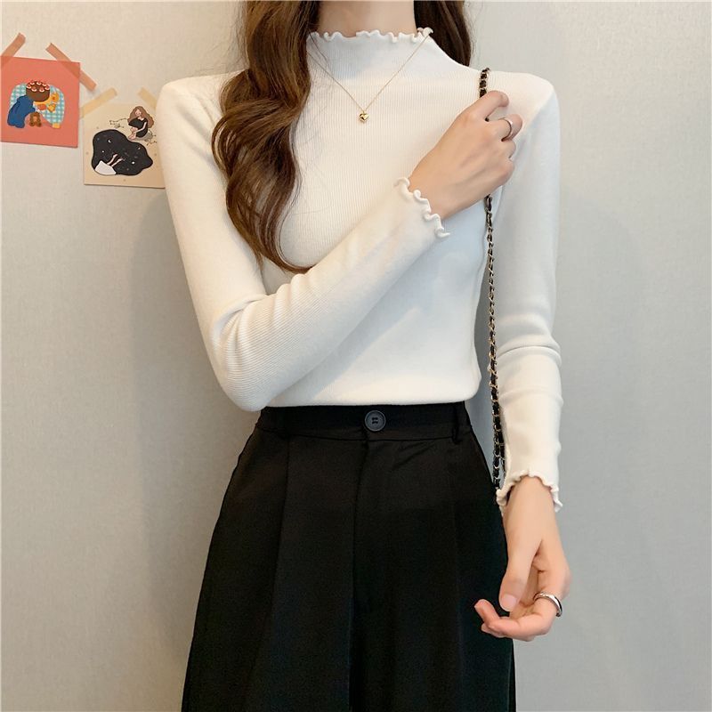 繊細な木耳縁のハーフタートルネックニットインナー、女性用春秋冬新作、スリムフィット、柔らかなセーター