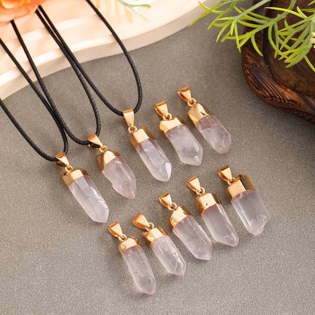 天然石白水晶六角柱ペンダント不規則水晶原石ネックレスdiyアクセサリー水晶柱ペンダント