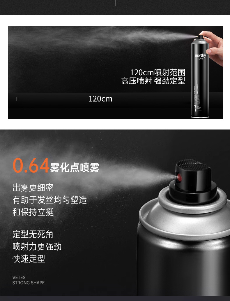 Usvthy定型スプレー自然なふわふわした男性の女性の持続的な髪のタイプのカールの粘着性の高い首のトップのヘアスプレー