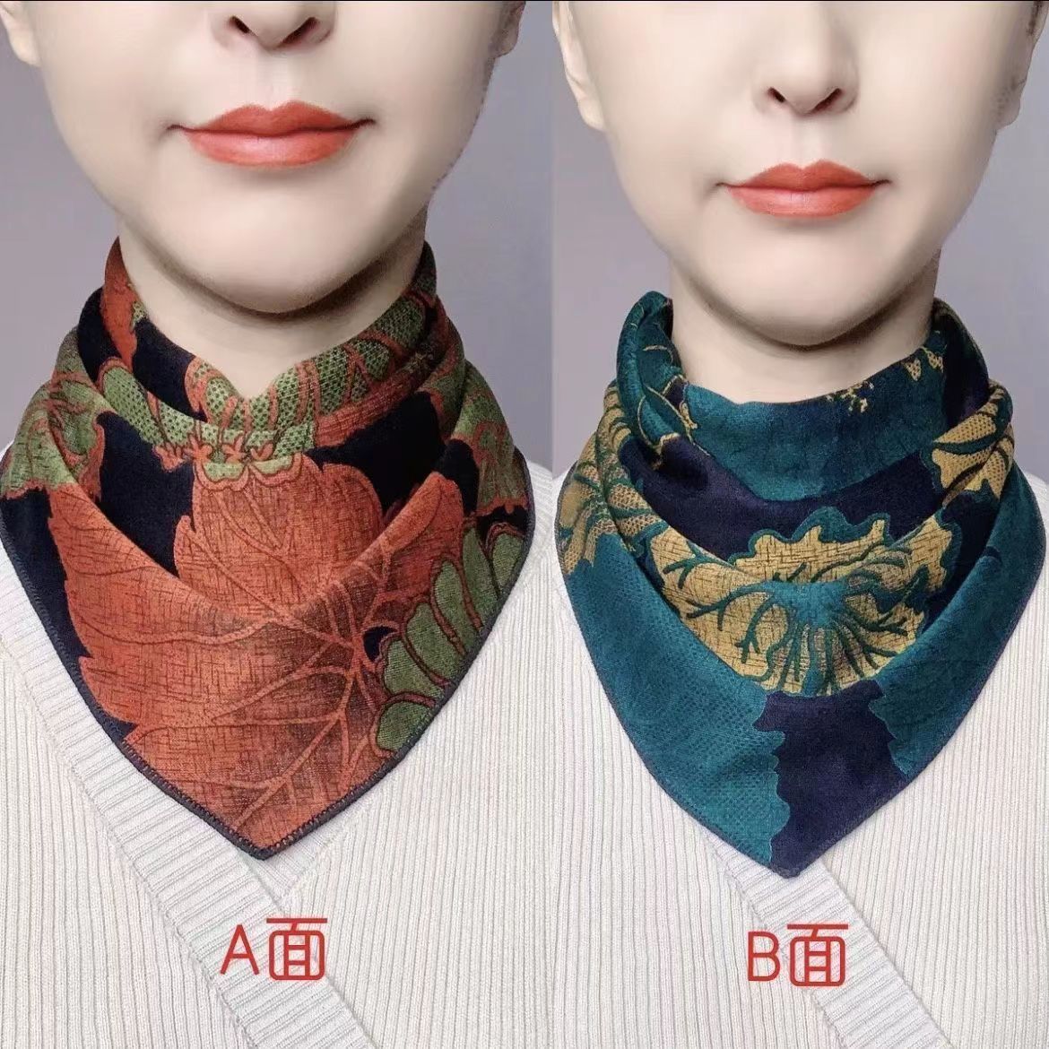 春秋双面三角巾丝绵保暖护颈新款时尚百搭假领双排扣围脖围巾女士
