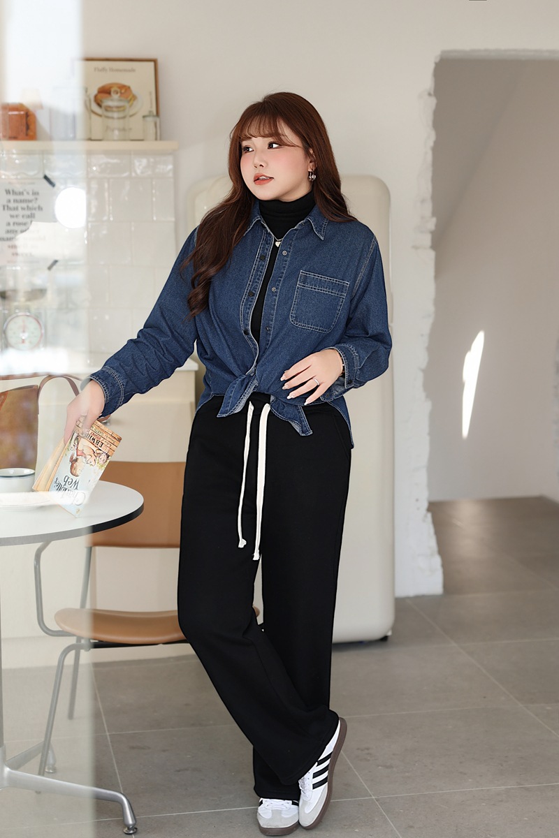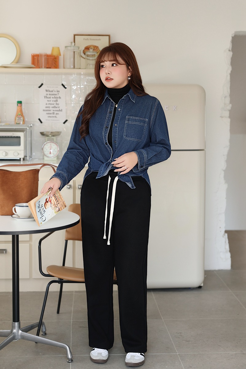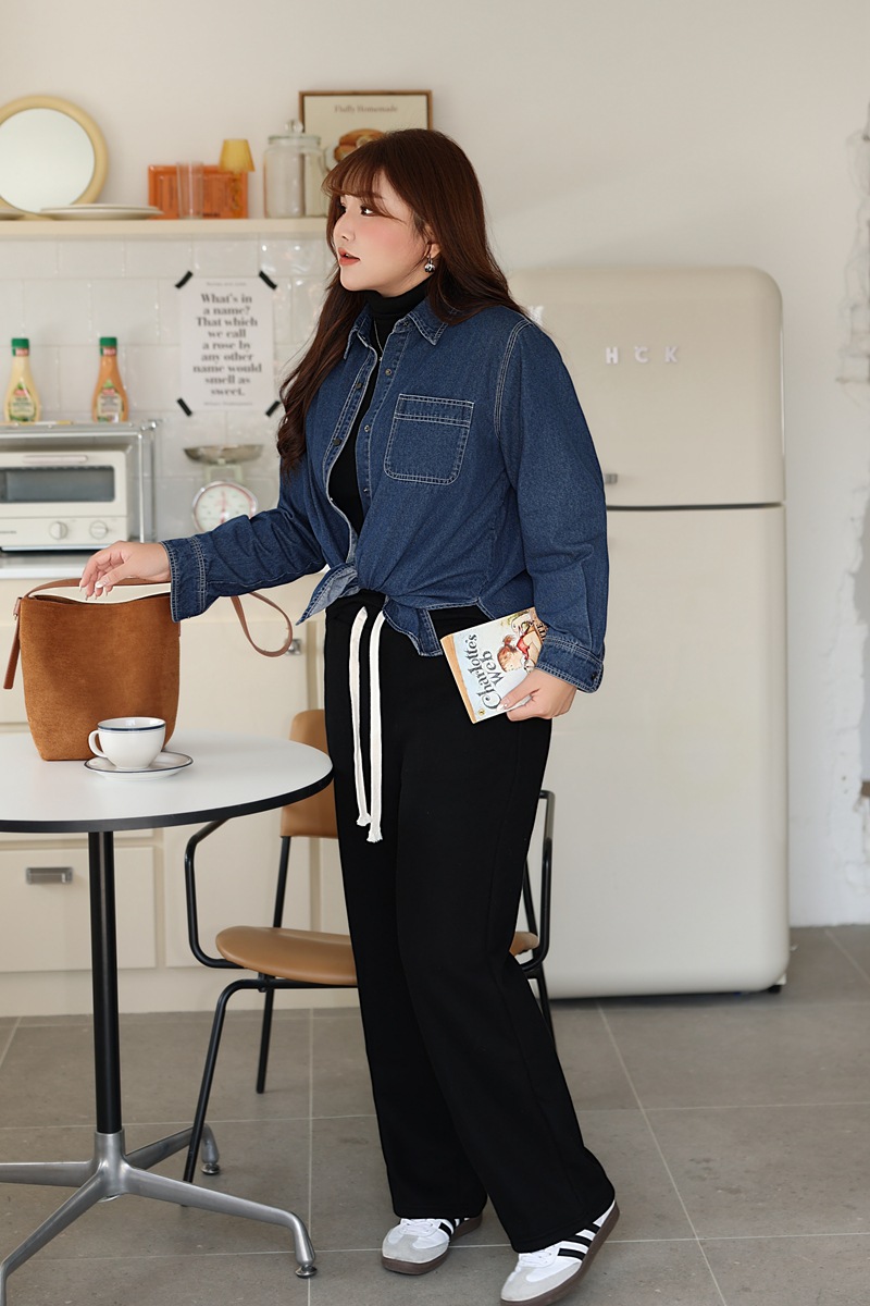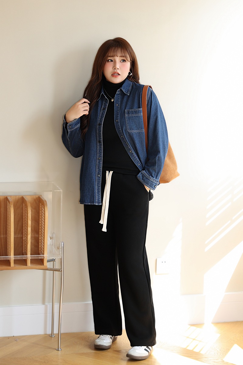 潤其n8658加大修理脚裁断微ラッパモップ弾力小黒ズボン卸売り大サイズ女装長ズボン